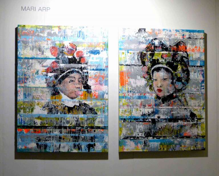 Auf der Suche nach dem Besonderen, nach Etwas, das man nicht vergessen wird, nach Etwas, das bleibt, oder das man unbedingt haben will, noch bevor es die Öffentlichkeit zu Gesicht bekommt, sahen sich die zahlreichen geladenen Gäste auf der Eröffnung der Entdeckermesse um und warteten auf ihren "Moment"! Mit rund 70 Ausstellern gerade groß genug, um nicht von Kunst erschlagen zu werden, mit etlichen vielversprechenden regional arbeitenden Künstlern, vertreten durch die renommierten Galerien des Rhein-Main Gebietes, aber auch mit Galerien aus den Kunstmetropolen wie Düsseldorf, oder international tätig wie die Gallery Tableau aus Seoul, hatte man die Chance auf viele gute Gespräche. Mal über Kunst, mal über das Leben an sich, oder das Kunstgeschäft im allgemeinen. Und dann irgendwann war er da, dieser eine Moment! "Manchmal darf Kunst auch einfach nur gefallen!" Mari Arp hatte unser Verharren vor Philine Görnandts großformatiger Papierarbeit "Roots" erkannt, war auf ihre unnachahmlich frische Art auf uns zugesprungen und hatte uns in ihren Bann gezogen. Die Künstlerin und Galeristin der eigenen Galerie Arp aus Hanau, gerade einmal ein Jahr auf dem Markt, will die Kunst wieder zu dem machen, was sie einmal war: Ausdruck von Freude, von Wut, von Angst, von Kritik, von Statement, gerne auch Understatement, und ohne kunsthistorisches Palawer, bei dem man sich mühsam das Gähnen unterdrückt. Kunst soll einfach wieder Spaß machen! So wie es Mari Arp beschrieb, ist ihre Galerie die Antwort auf den im Umbruch befindlichen Kunstmarkt. Jung, frisch, frech, voller Lebenslust und es darf auch gelacht, auf jeden Fall aber geschmunzelt werden. Geschmunzelt, wie bei der asiatischen Dame mit Kaugummiblase vorm Mund, die Arp selbst als Abschluss ihrer asiatischen Phase in einem Duett zweier großformatiger Asien-Porträts präsentierte.