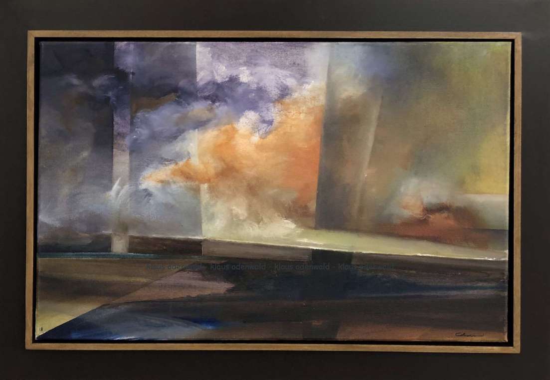 Klaus Odenwald, bekannt für seine rauen, beeindruckenden Landschaften der Bretagne hatte dieses Mal ein Werk im Gepäck, das wirkte, als habe er verschiedene, geometrische Formen in transparenten Ebenen über die Landschaft gelegt. Der Betrachter selbst kann nun entscheiden, ob die Harmonie der Landschaft gestört wird, oder die Entfremdung der Landschaft erst den besonderen Reiz ausmacht und eine Spannung erzeugt, die ihn immer wieder in seinen Bann zieht.