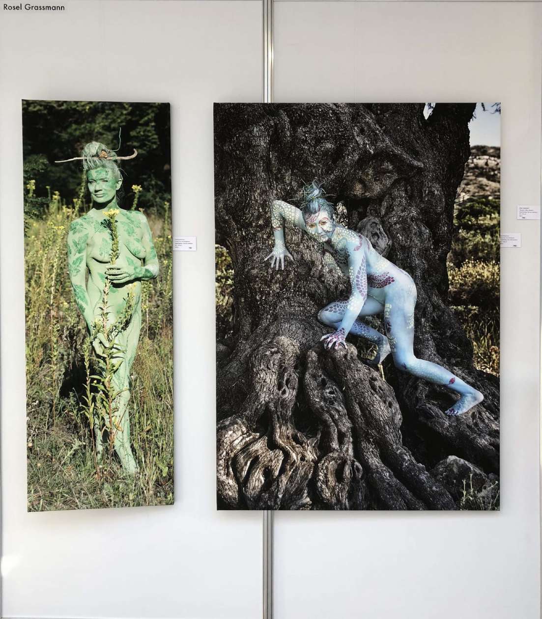 Besonders beeindruckend sind die Foto-Auftragsarbeiten von Rosel Grassmann. Für einen einzigen Tag, eine einmalige Aufnahme werden Menschen geschminkt und in Szene gesetzt. Die nackten Gestalten betören wie Wald- und Naturgeister aus Märchen oder Fantasy-Szenen. Als Teil der Natur scheinen sie eine besondere Energie abzugeben und beim Anblick der Aufnahmen ist es, als könne man diese Energie spüren. Man taucht ein in eine völlig fremde Realität. Rosel Grassmann hat die Energie für die Ewigkeit festgehalten. Momente voller Energie und Harmonie.