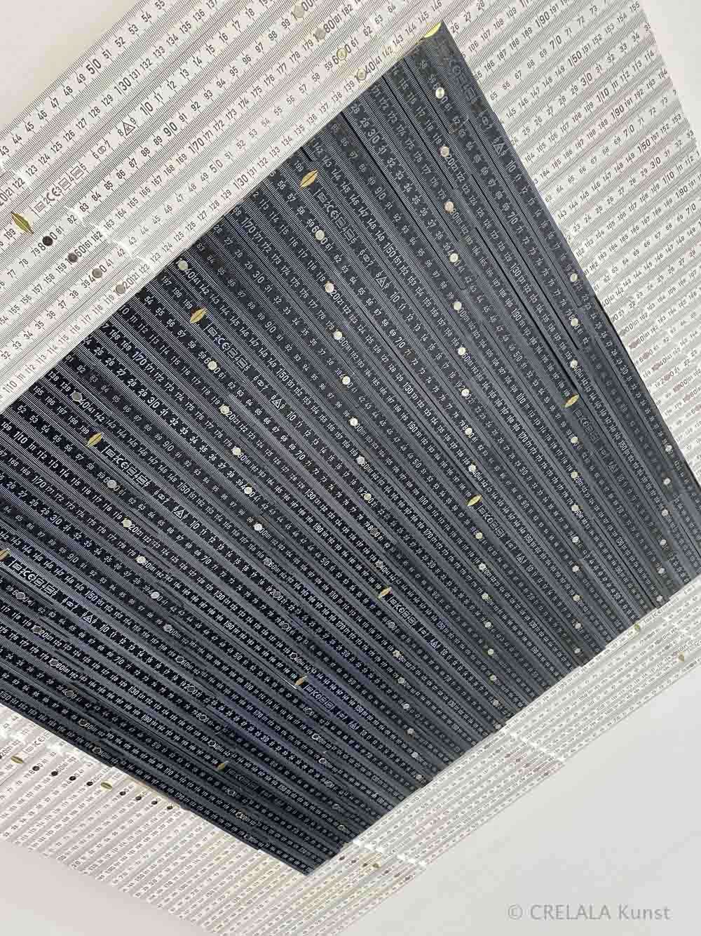 Hier nicht. Hier wird das maßgebende Instrument zur Grundeinheit von Größerem und man steht am Beginn von … ja was eigentlich? – Mathematik? Mit deren Hilfe man physikalische Phänomene erklären kann, sofern man weit ausholt, um Milen Tills Kunst zu interpretieren? Gott sei Dank gibt es das NETZ. Man wird finden und entdecken, muss dann abwägen und die Wahrheit suchen. Vielleicht ist das genau die Aussage hinter der Arbeit. Die Gelegenheit zu fragen hat man nicht.