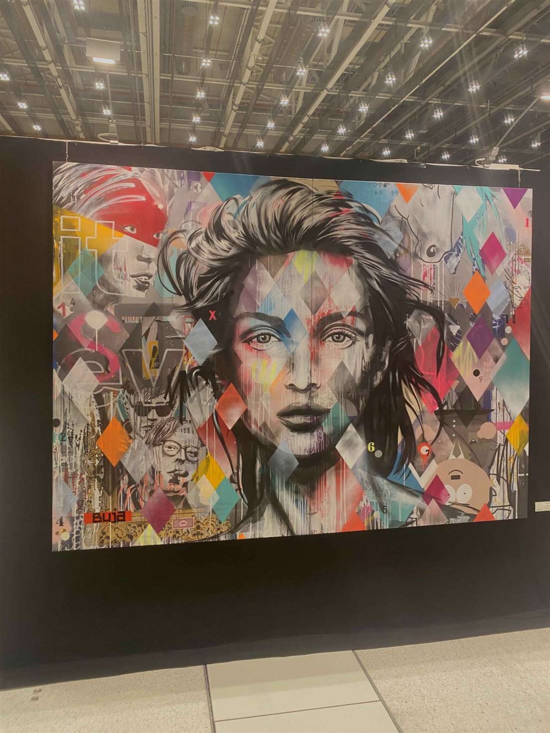 Buja berührt. Der junge Künstler, dem wir seit dem ersten Werk verfallen sind, weil er R2D2 in den Armen der Madonna hat zu Grabe tragen lassen. Und Mona Lisa hat er zur Gefangenen des Louvre erklärt. Auf einem neuen Kunstwerk, einer Experimentierfläche wie er selbst sagt, entstanden während der Pandemie, hat er in Übergröße wieder Denkwürdiges hinterlassen. Ein MEGA Machwerk. Ein neues Meisterwerk des jungen Künstlers, der erklärt, er möchte regional wachsen. Langsam. Nicht zu schnell, denn es gibt zu viel zu Hause, das hält. Den gleichen Satz hat man schon einmal gehört. Das war auf der anderen Seite der Welt. Und genau dort könnte man ihn auch sehen. Buja sieht man auf der internationalen Bühne. Sein Werk, ein Porträt einer jugendlichen Schönheit neben alten Berühmtheiten und Gesichtern, die man kennt. Wie ein Blick hinter das Glas. Man erinnert sich an Georg Pummer, doch hier ist es nichts Digitales. Keine Glitches.