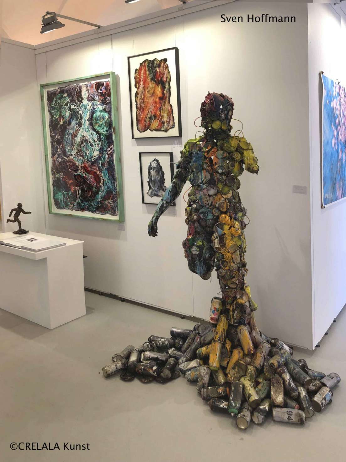 Die Kunst der Mauerreste, die in Streetartmanier von Sprayern mit Graffity zum Kunstwerk erhoben wurden, erweitert Sven Hoffmann über den Standort hinaus um die übrig gebliebenen, leeren Spraydosen der Kunstwerke, mit denen er einen mobilen, dynamischen Dosen-Mensch erschafft. Eine etwas andere Art des Recyclings, wenn gleich auch eine geniale, die fasziniert.