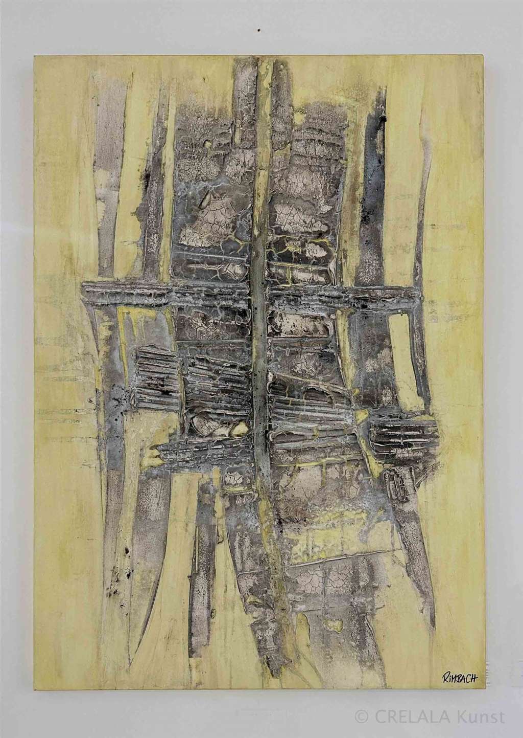 Strukturen des Seins. Was will, kann man sich darunter vorstellen? Bei Klaus Rimbach, dem Biologen kommt man den Strukturen vielleicht am ehesten auf die Spur. Er arbeitet mit Shellack, Kleister, Gesteinsmehlen, und versucht darzustellen, was sich ansonsten in Petrischalen abspielt. Mit Mikroben. In der Forschung erarbeitet man das Werden, um es nachzubilden, will das Organische erwachsen lassen, selbst Schöpfer spielen.