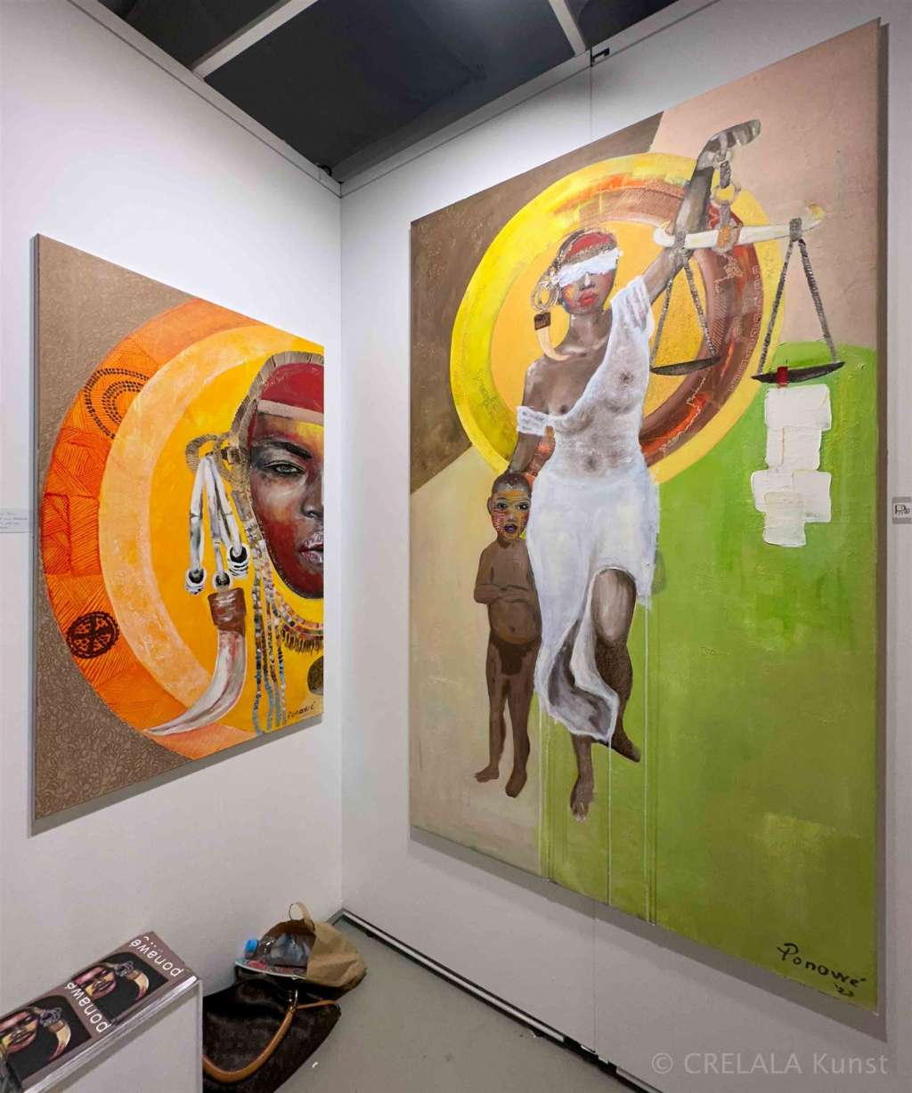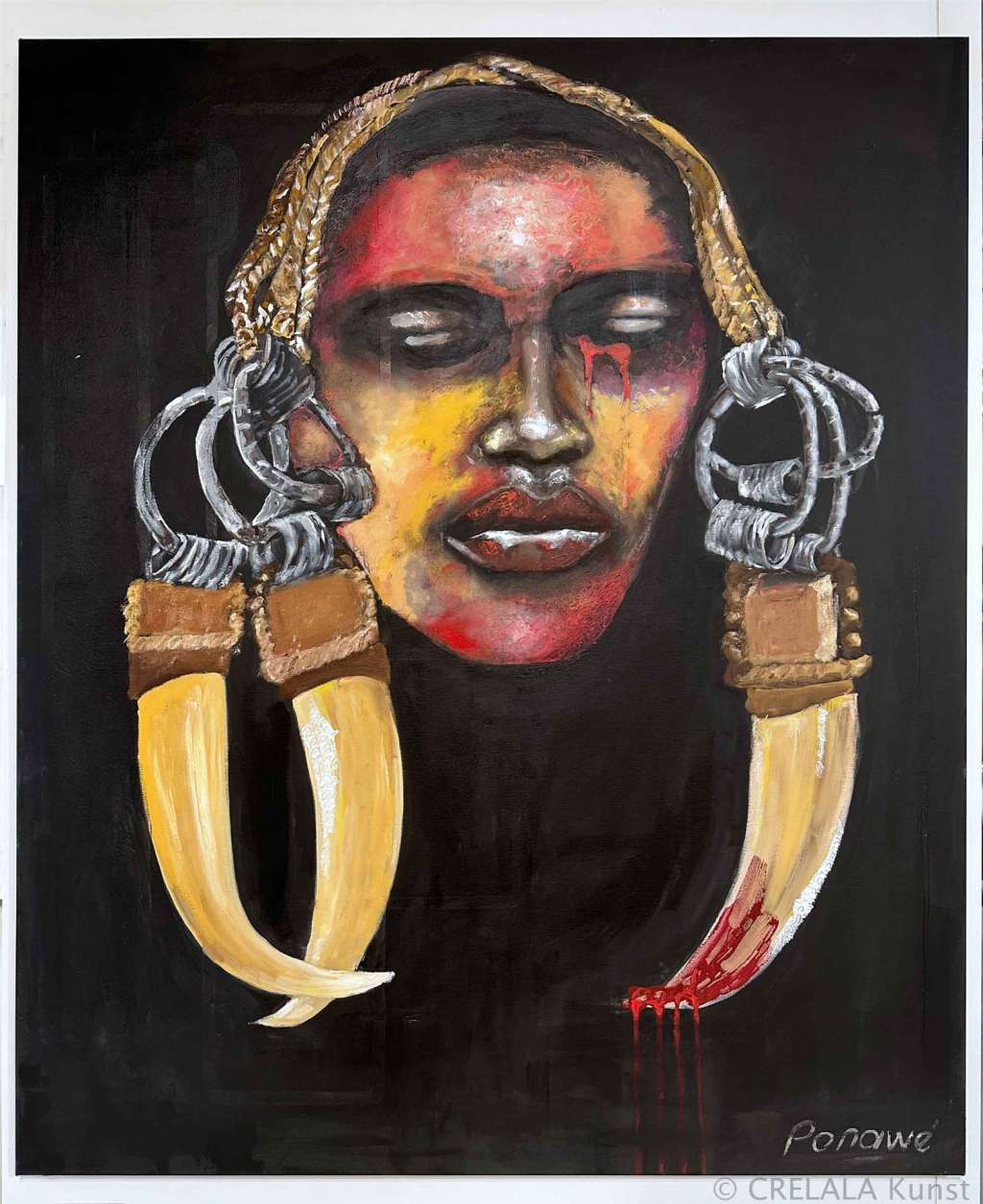 Stammesrituale in Afrika, politische Aussagen und Schmuck als Kriegsaccessoire hat sich Ponawé als Motiv gesucht, um kulturelle Besonderheiten der Völker zu beschreiben. Kulturelle Feinheiten, die nur schwer von anderen verstanden werden können, über die man aber nicht leichtfertig urteilen sollte sind sein Motiv. Jede Kultur hat ihre Besonderheiten und Feinheiten und Ziel des Künstlers ist es zu beleuchten, wo Dialog zum Völkerverständnis notwendig ist. Dialog als Mittel der Völkerverständigung dient dem Verständnis aller Nationen für die Arbeit am gemeinsamen Nenner für Menschenrechte. Hier sind nicht nur die Anderen gefordert, auch die eigene Position darf in Frage gestellt werden und im Hinblick auf internationale Zusammenarbeit und Verflechtung von Netzwerken rückt der Künstler auch die eigenen Vorurteile in den Fokus. Einen Fokus, der vielleicht Strukturen beleuchtet, die es so schon lange nur noch als traditionelle Brauchtumspflege zu besonderen Anlässen gibt.