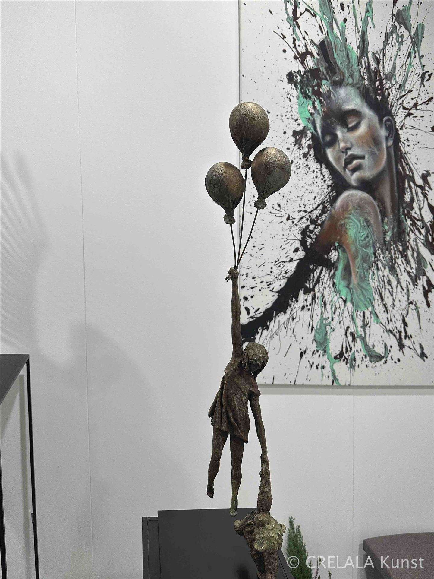 An Vertrauen denkt man auch bei einem neuen Werk von Karina Laru Nau. Die Künstlerin ist in der grünen Phase angekommen. „Frauscher mit Kind“ liest man und verliebt sich vielleicht in die androgyne Gestalt mit schutzbedürftigem KIND. - Das eigene? Ein Fremdes? Wer ist die Frau? - Die Mutter? - Geschäftsfrau? - Managerin? – Retterin? - Vertrauensperson? – Oder im Gegenteil, … aber an der Stelle will man besser nicht weiter denken.. - KIND braucht Schutz!