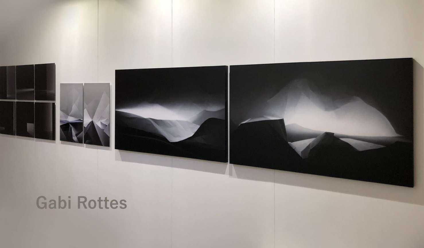 Manchmal sieht man etwas aus dem Augenwinkel und es zieht einen magisch an. Man will es genauer sehen. Man hat schon eine Vorstellung, eine Vision, eine vage Idee, was einen erwartet, doch dann ist es etwas ganz anderes. Und das ist es, was fasziniert. Man kann den Blick nicht mehr abwenden. So geschehen auf der Art Muc 11/18, bei den SW-Fotografien von Gabi Rottes. Gabi Rottes' Kanten, Räume, Fluchten, ... Bergwelten? - Das ist es, was wir sehen wollen. - Was aber sehen wir wirklich? Das Spiel mit Licht und Schatten, Gabi Rottes beherrscht es. Angewandte Geometrie könnte es heißen, Lichtspiele, Fantastische Welten... Vieles fällt uns beim Anblick der klar strukturierten Schwarz-Weiß-Fotografien der Künstlerin ein. In jedem Fall präsentiert sie ein gut durchdachtes, anziehendes und harmonisches Konzept. Daumen hoch für Gabi Rottes!