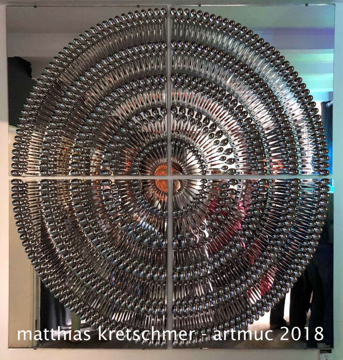 Man ist geneigt vorbeizueilen, dann schaut man genauer hin und stutzt. Etwas ist anders. Nicht nur ein Kreis, nicht nur sich wiederholende Muster, kein Mandala, noch ein, zwei Schritte darauf zu und dann offenbart sich das Werk von Matthias Kretschmer . Löffelkreise!!!! . Alltag für die Wand, so einfach, so genial, unverwechselbar