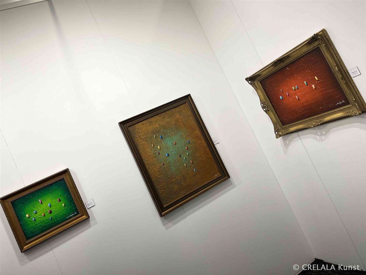 Der Künstler aus Glienicke Nordbahn schafft starke Denkanstöße. Man glaubt die Ideen so noch nicht gesehen zu haben. In einer unbekannten Gefühlswelt versunkene Figuren auf einem grünen Formenfeld, das an Hochbauten, Türme oder Stelen erinnert, fragt man sich vielleicht was man sieht. - Wie teilt man ein was man sieht? - Ist es Absicht einteilen zu wollen?
