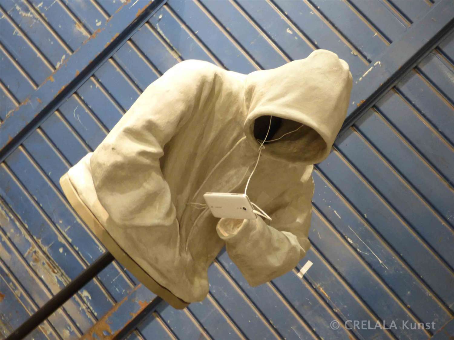 Kritik, wie das Zurücklassen einer geisterhaften menschlichen Hülle, eines smart Ferngesteuerten, eines Kapuzengeistes, eines Anonymous, einer Betonskulptur von Joachim Schulz, mit dem bezeichnenden Titel „Abwesend“.