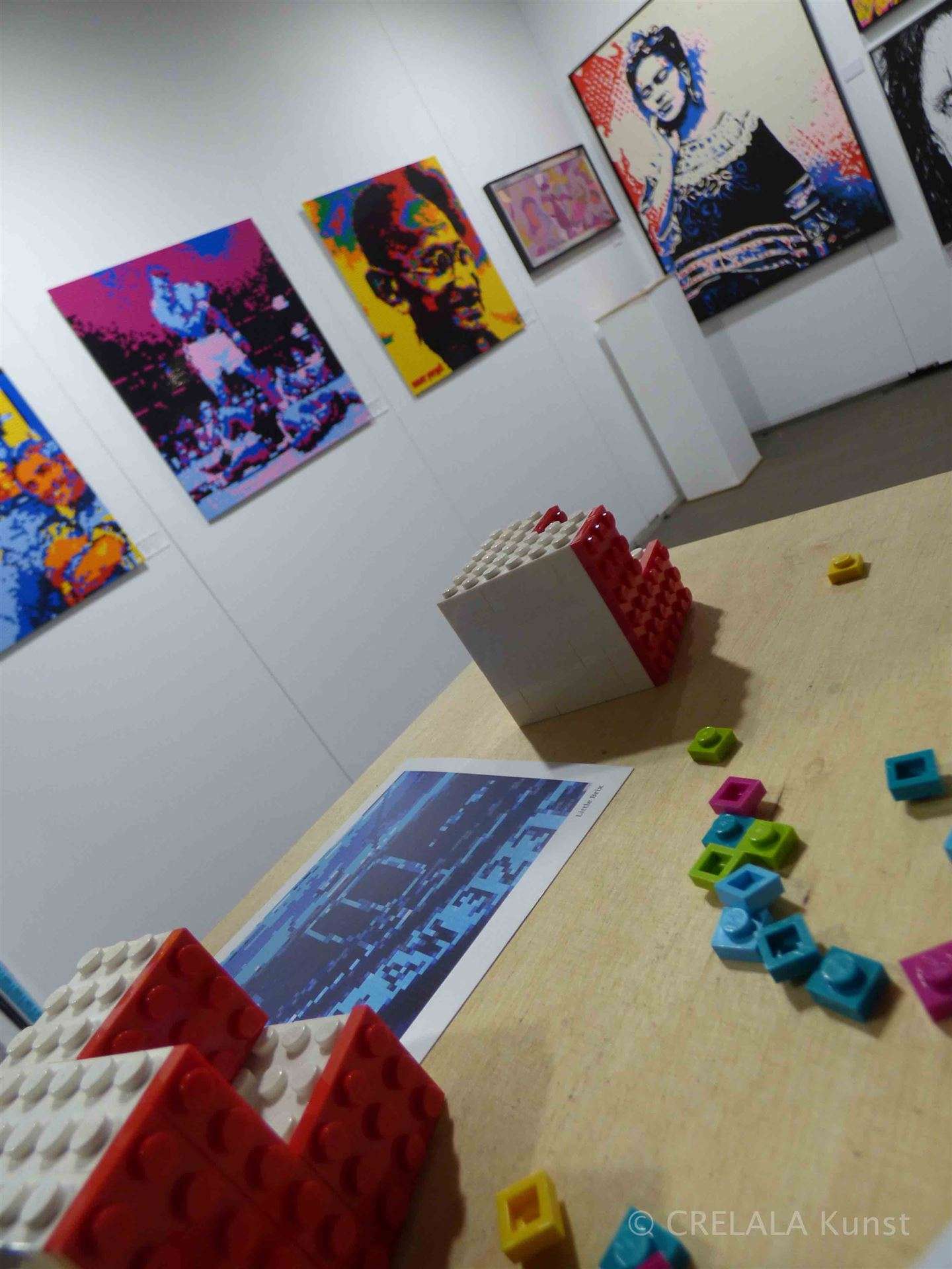 Frauenportraits begehrter Schönheiten in rosa und blau und Ton-laute Rockstars, Rolling Stones, deren Pulse als Wellenkreise in die Zeit entlassen wurden und noch immer werden, sind das Ergebnis von mühevoller Kleinarbeit, in stundenlanger Versenkung in eine Arbeit, die Little Brix und Jakob Reh dem Betrachter vorführen. Zeit, in der man nicht smart pulsen kann, … Zeichen in die Zeit tragend, für Ruhe stehend. – Still! - Friedlicher Kampf gegen das Unfassbare. Vielleicht auch Kampf gegen Langeweile… – Kunst weckt das Denken! - Intelligent Design als farbpointierte Vision, oder plastik-gepixelte kreative Schöpfung, nondigital in LEGO! – Ein Denkanstoß.