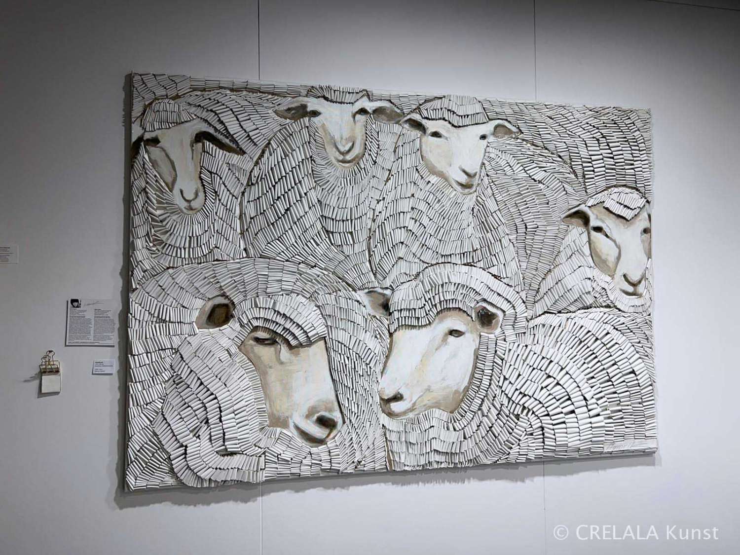 Die Freie Hansestadt wäre nicht denkbar ohne den Handel mit Stoffen und Geweben, und dieser Bedeutung wird bei der incorporating art fair nicht zuletzt durch Martina Hamrik mit ihrer patentierten Schleifenkunst ein Denkmal gesetzt. Eines der jüngsten Werke ist eine Schafherde. Die Schlaufen sind hervorragend geeignet Schaffell nachzuahmen und dieses Mal ist es nicht die menschliche Bewegung, die in Szene gesetzt wird, sondern es sind die Schafe, die man scheren kann, deren Wolle man spinnen kann und deren Wollfäden man über Schlaufentechnik zu Gewebe an Webstühlen verweben kann. Nachhaltige Kleidung bis hin zu wunderbarsten Teppichen können gefertigt werden.