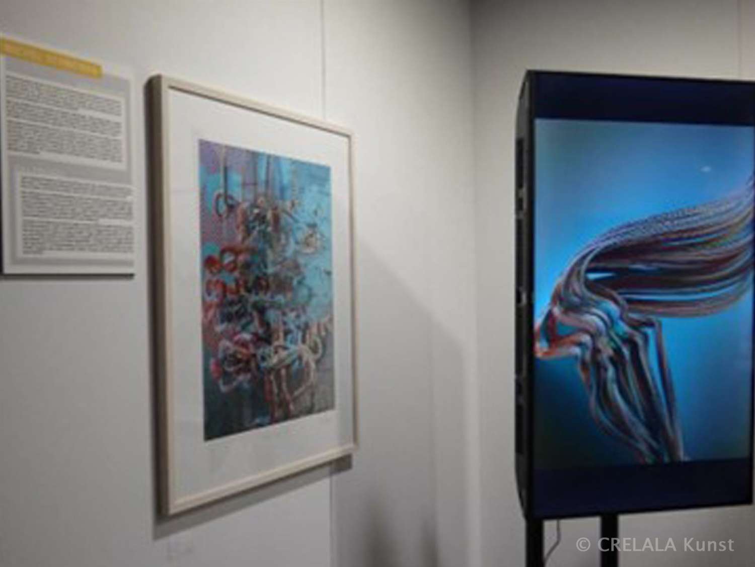 INC DIGITAL.LAB, gleich neben Nicole Doth und Georg Hendricks, beweist, welch wunderbare Schöpfungen durch digitale Kreativität entstehen können. Sowohl raumsparend auf Großbildschirm in Hochkant als Film ablaufend, programmiert in Python, wie man auf dem Monitor liest, als auch ausgedruckt, für ein „Still“ hinter Glas an der Wand. Digital Art & NFTs sind zum elementaren Bestandteil digitaler Kunst geworden und nicht mehr wegzudenken aus der Zeit. Virtual Reality (VR), Augmented Reality (AR), Künstliche Intelligenz (KI), was für Kürzel im Hinblick auf die Neuzeit auch fallen, seit Jahren wird digital entwickelt, entworfen und simuliert,… spätestens seit den Möglichkeiten auch mittels „deep dive“ in die Matrix einzutauchen hat sich das Bewusstsein für Normalität verändert.