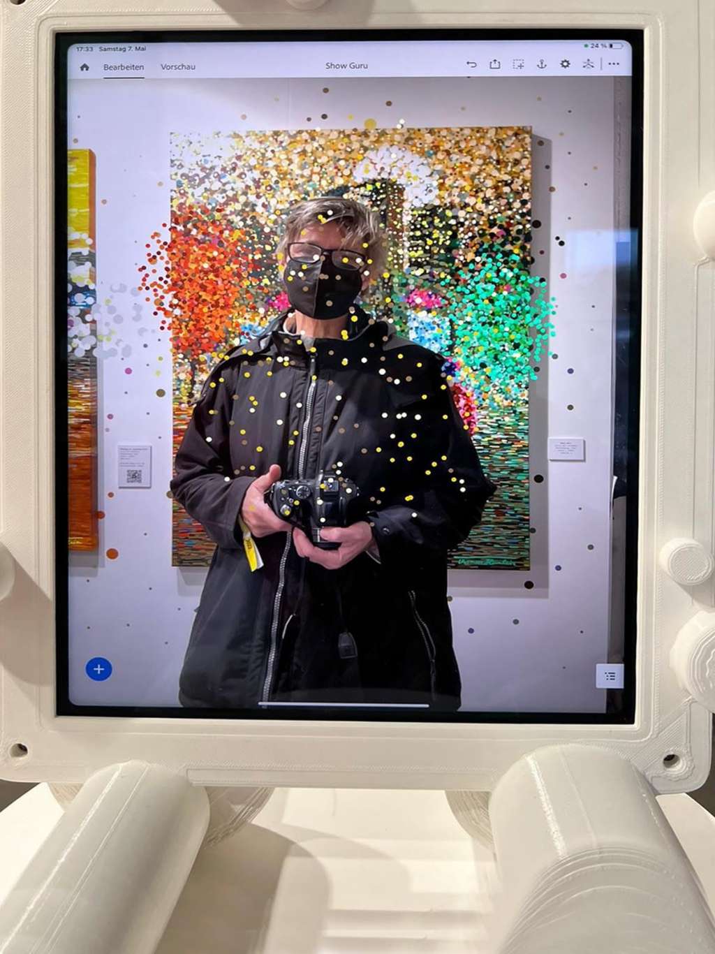 Das Digitale im Gepäck, dürfen Kunstliebhaber neue Möglichkeiten entdecken und virtuelle Kunst für die Wände kommt auf Großbildschirmen daher, die auch schon mal Hochkant gehängt sind, so dass eindeutig zu sein scheint, dass die Bestimmung nicht für Fernsehkonsum gedacht ist. (Vielleicht.)(Eigentlich?) - Andererseits haben (kleine) Smartgeräte, je nach Haltung kein festgelegtes oben und unten mehr. Das Koordinatensystem ist raumvariabel und der Smartgerätbesitzer wird zu seinem eigenen Astronauten, der die scheinbare Schwerelosigkeit in Händen hält.