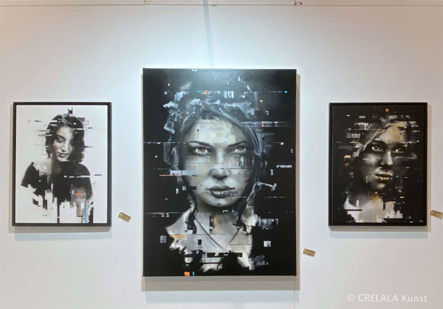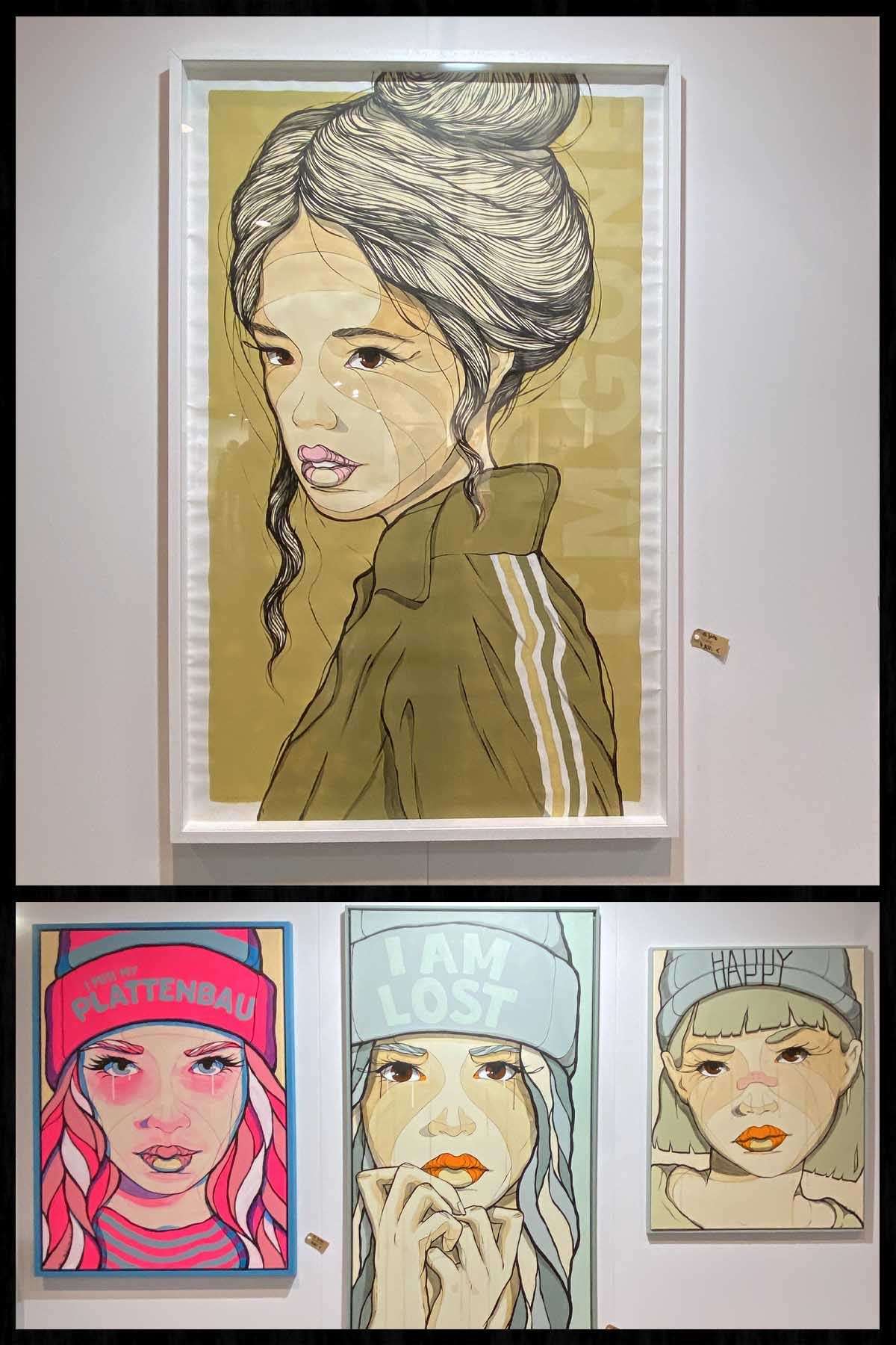 Die offene Stahlkonstruktion der Messehallendecke erschwert einen Klang, der einheitlich wirken kann. Um so interessanter der Einsatz von Kopfhörern und Ear Pods, die den Betrachter der Kunst ganz in den Dialog treten lassen können mit dem, was sie sehen.