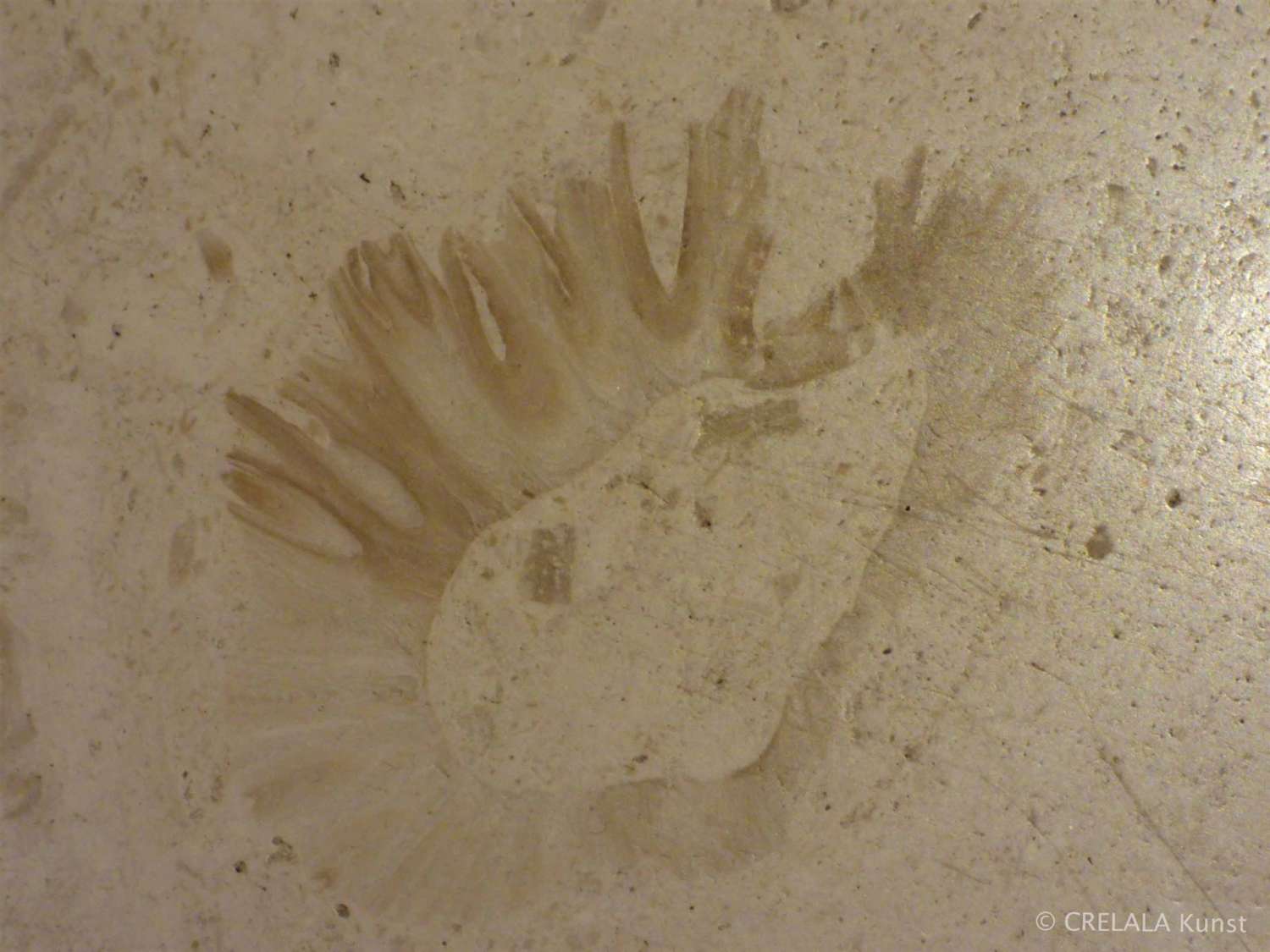 Bedeutende Zeilen, die erhalten werden sollen für die Ewigkeit, denen man Raum geben möchte, die man wertschätzt. Worte voller Tiefsinn und Bedeutung und im Gespräch mit der Künstlerin erfährt man vor ihrer Inspiration. Von der Intention, was sie antreibt bei der Arbeit und was sie aus Begegnungen im Leben herauszieht. Das Gespräch in einer tiefsinnigen Begegnung, führt zu den unterschiedlichen Ansätzen, wie Menschen die Welt wahrnehmen. Man kommt vom Hölzchen aufs Stöckchen und plötzlich spricht man über die Betrachtung eines Aquariums. Der westlich zivilisierte Mensch, fokussiert aufs Objekt, sieht die Fische im Aquarium. Vielleicht die einzelnen Pflanzen. Vielleicht die Spuren im Sand am Boden. … Die Details Immer im Blick liegt der Fokus auf dem Objekt. Der fernöstliche Ansatz wäre ganzheitlich, also das System Aquarium. Das Wasser, in dem die Fische schwimmen, in dem die Pflanzen wachsen. Und man schlägt den Haken während des Gesprächs hin zu den Schichten der Tusche, wie Schichten der Erde, die wächst, je nach klimatischen Bedingungen, je nach Phasen der Erdgeschichte, innerhalb der Erdzeitalter. Phasen, die alle ihre Zeit brauchen, um eine Momentaufnahme abzubilden, die Mensch zum Zeitpunkt des Betrachtens interpretiert. Je nach Stand des Wissens. Und dann erkennt man in den Gefilterten Geschichten einen Vulkan, oder Strukturen, die aussehen, wie Spuren von Fluten in der Wüste oder von Vulkanausbrüchen, die ihre Lavafelder hinterlassen, oder Feuchtphasen über Landschaften,… Ereignisphasen die ihre Zeit brauchen, um Spuren zu hinterlassen. Manche Werke erinnern an Gingko-Blätter, manche an Walnuss-Strukturen, wie auseinandergerissene Gehirnhälften, immer kombiniert man das, was man schon gesehen hat mit dem, was man sieht und wie immer gleicht das Hirn ab und versucht eine Geschichte zu finden, die Sinn in alles bringt. Das harmonische Gleichgewicht herstellt zwischen allem, das existiert. Den Weg zum Anfang findet.