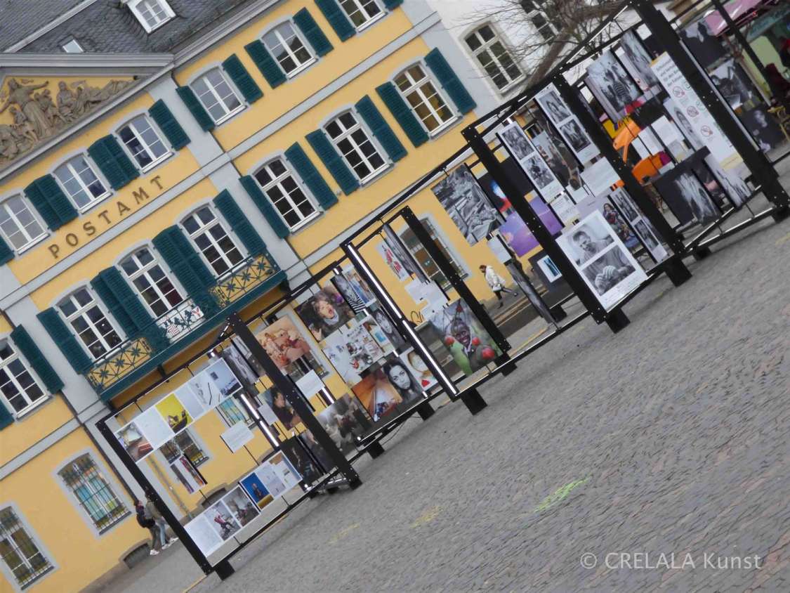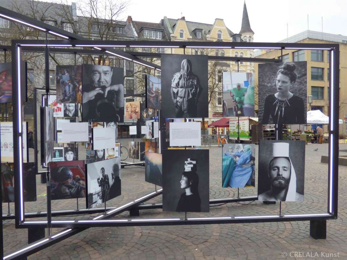 Eine öffentliche Ausstellung auf dem Bonner Münsterplatz, das alte Postamt im Hintergrund, auf dem Platz nur leere Weite, bis Tauben auseinanderfliegen, aufgescheucht von ein paar Kindern, die noch einen Blick für die Authentizität dieser Welt haben, Kinder, denen ein paar Tauben Freude bereiten, Tauben, wie auf fast allen Plätzen dieser Welt. Plätze des Lebens. Gerade ohne Leben, wie ausgestorben. Inzwischen. Inmitten einer Pandemie. - Geshoppt wird online, die Städte verwaisen. Innenstädte trauern. Offene Plätze vor malerischer Kulisse, winterkalt. - Entmenschlichtes Draußen, lebens-müde. Aber dann gibt es da diese Ausstellung. Und die Fotografien sind voller Leben. Bilder von Menschen! In Menschen-leerer Kulisse. … Und die Bilder werden noch sein, wenn die Menschen schon lange nicht mehr sind. Man wird sich erinnern. Eines Tages. - Hoffentlich.