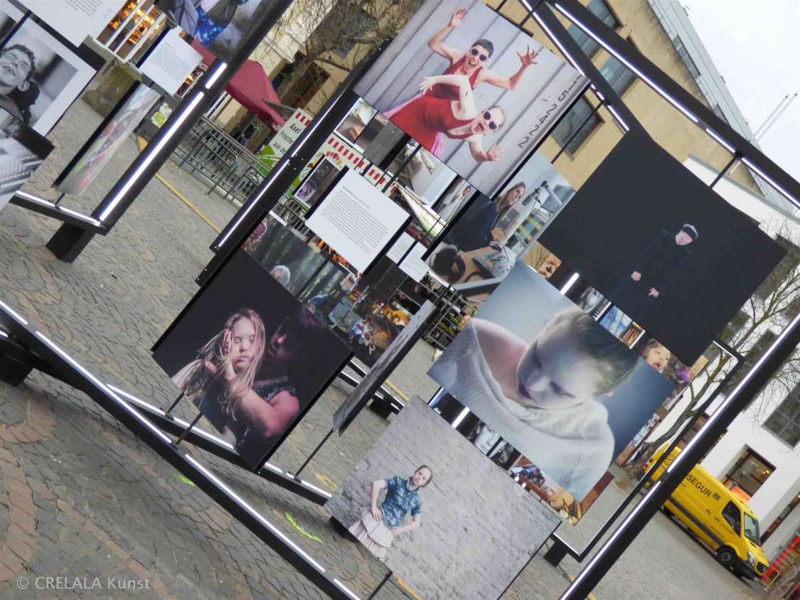 Woran man vielleicht vor der Pandemie noch achtlos vorbeigelaufen wäre: Jetzt nimmt man wahr. Nimmt ein auf Zeit installiertes „Luft-Museum“ wahr, das ein wenig wirkt wie eine Bushaltestelle voller Plakatanschläge. Eine Bilderwand, die einlädt zu verweilen, ja geradezu darum bittet, sich ein wenig Zeit zu nehmen, um wahrzunehmen, was Kunst und Künstler zu sagen haben. Fotografien, die nicht im Museum verschwinden, so dass man sie extra suchen muss. Besuchen. Und dann steht man vor großen Fotografien. Fotografien, die bewegen. Die etwas mitzuteilen haben. Fotografien, hinein in eine Pandemie, eine neue Zeit, in der man sich vielleicht wieder mehr auf das Menschliche besinnt. Weniger auf die Maschine, die alles beherrscht. Man verharrt und fühlt sich eingeladen gegen die Hektik einer modernen Zielorientiertheit aufzulehnen. Fühlt sich angehalten das Achten zu lernen, Empathie zu FÜHLEN und hin-, nicht wegzuschauen. …