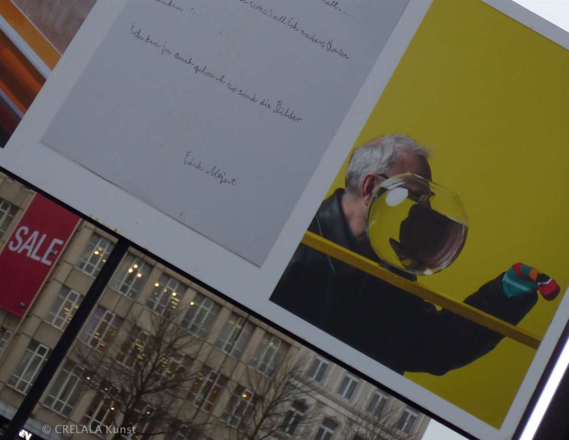 Der öffentliche Raum wird als Mahnmal genutzt. – Mahnmal zu LEBEN! - Wer bleibt stehen? - Wer sieht hin? - Wer von denen aus der „Generation Smart“ hebt den Blick vom blauflimmernden Gerät und betrachtet die Ausstellung? Die Bilder einer scheinbar degenerierten Gegenwart? – Wer macht Fotos von den Fotos? – Noch mehr Fotos, in denen man sich verliert. Bilder über Bilder, Bilderberge, …