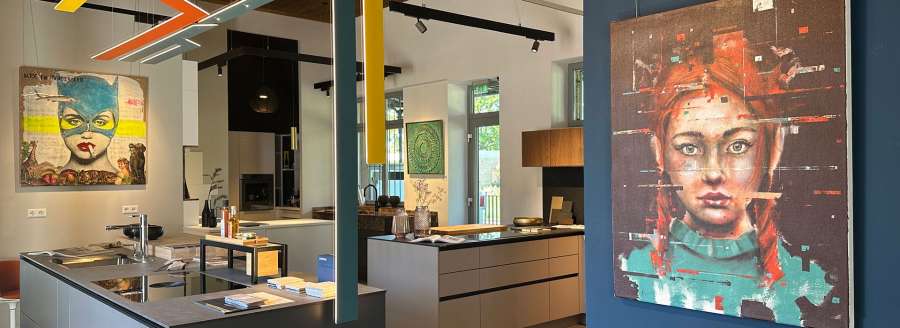 Regelmäßig wechselnde Werke von unterschiedlichen Künstlern wie Nadja Kimova, Matthias Kretschmer, Georg Pummer und Mari Arp, um nur einige zu nennen, verleihen den Traumküchen von mi.Küchen+Design eine einzigartige Atmosphäre. Die Lichtgestalter rücken sie ins perfekte Licht.