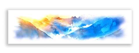 Das Kunstwerk "Übergang" ist eine Fotografie in Aquarelloptik, daher der Begriff Aquagrafie. Das Kunstwerk ist auf Aquarell-Papier gedruckt, auf Alu-Verbundplatte aufgezogen und hat ein Außenmaß von 110 cm 30 cm x 0,3 cm. Dieses Werk hat eine limitierte Gesamtauflage von 3 Stück.