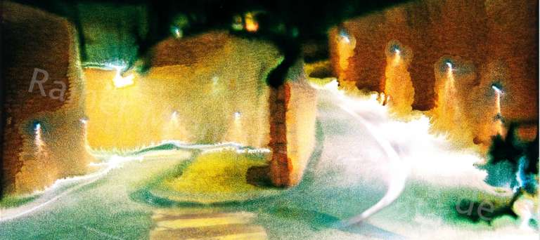 Das Kunstwerk "Unterführung 2" ist eine Fotografie in Aquarelloptik, daher der Begriff Aquagrafie. Das Kunstwerk ist auf Aquarell-Papier gedruckt, auf Alu-Verbundplatte aufgezogen und hat ein Außenmaß von 90 cm x 40 cm x 0,3 cm. Dieses Werk hat eine limitierte Gesamtauflage von 3 Stück.