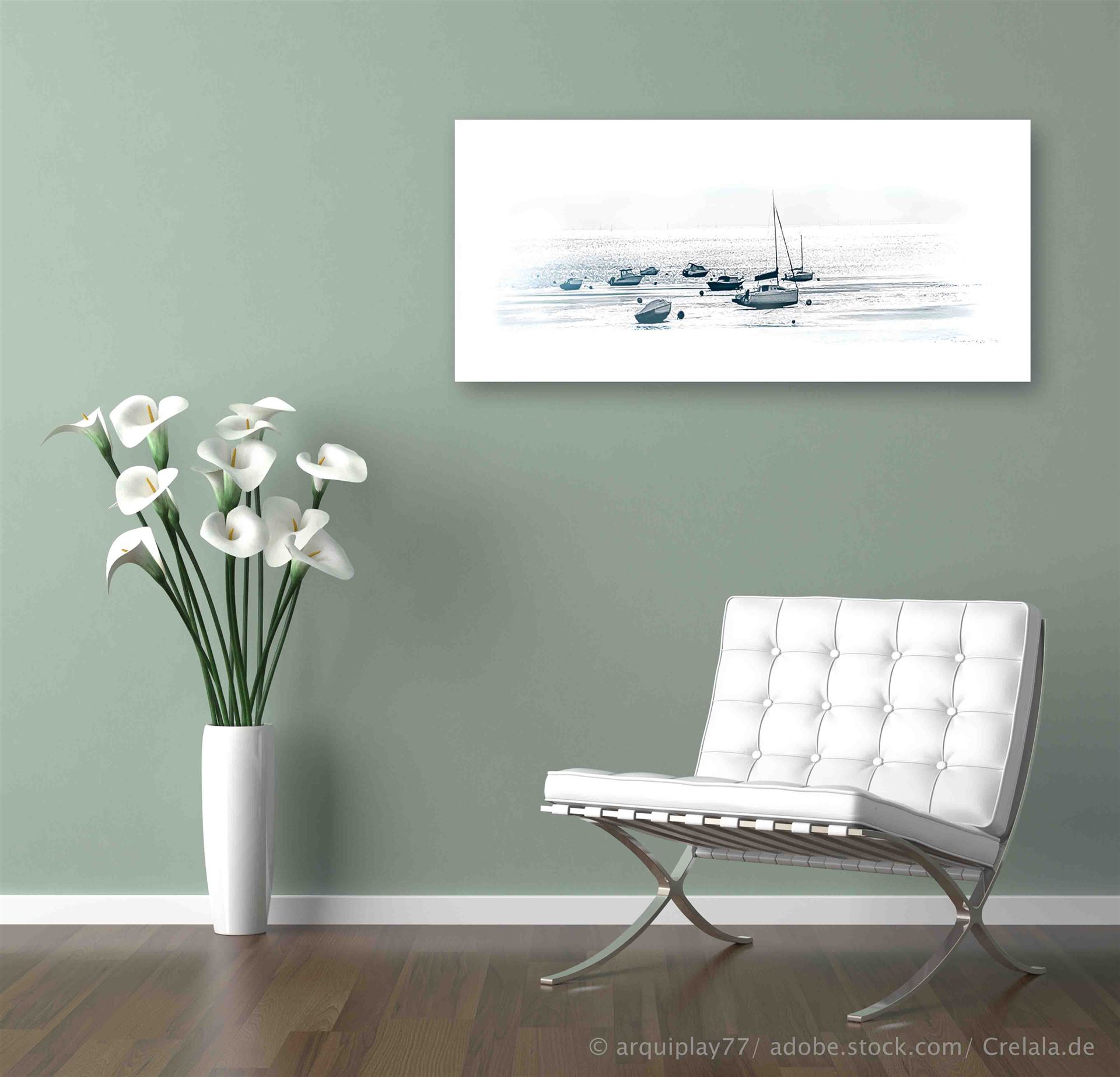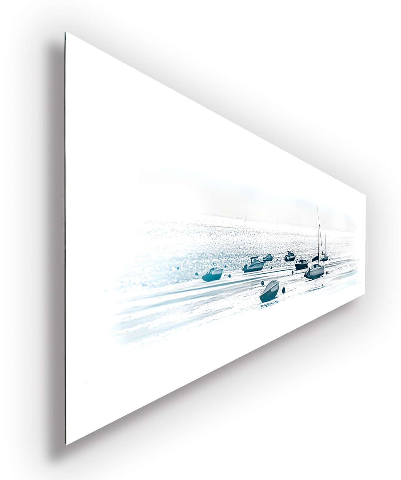Das Kunstwerk "Segelboote bei Ebbe" ist eine Fotografie in Aquarelloptik, daher der Begriff Aquagrafie. Das Kunstwerk ist auf Aquarell-Papier gedruckt, auf Alu-Verbundplatte aufgezogen und hat ein Außenmaß von 110 cm 25 cm x 0,3 cm. Dieses Werk hat eine limitierte Gesamtauflage von 3 Stück.