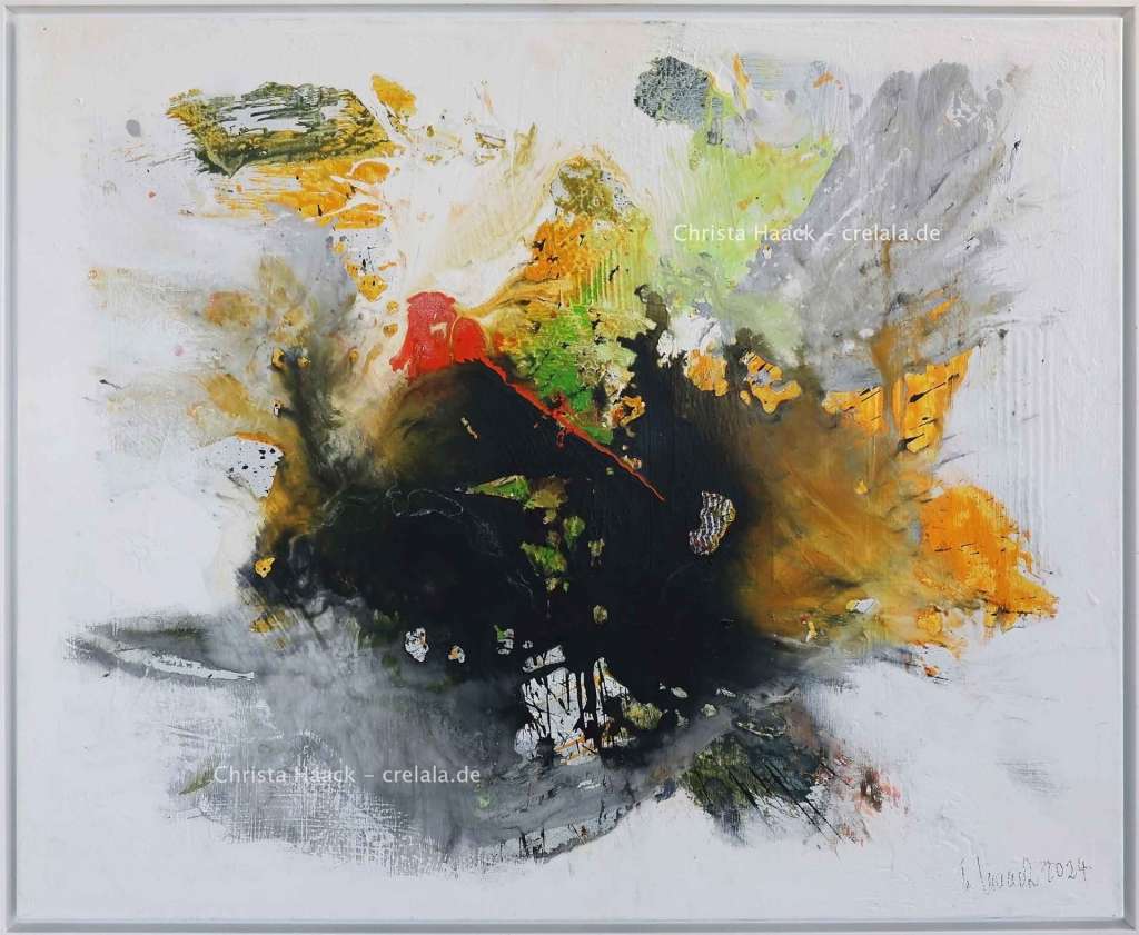 In diesem Gemälde wurde kräftigen Acrylfarben, Sprays und Tinten eine Welt voller Energie und Emotionen geschaffen. Die abstrakt-expressionistische Technik ermöglicht eine dynamische Komposition, die Assoziationen und Gefühle freisetzt. Die energetischen Farbexplosionen und die subtilen Spritzer und Kleckse sollen den Betrachter inspirieren und eine lebendige, emotionale Präsenz vermitteln.