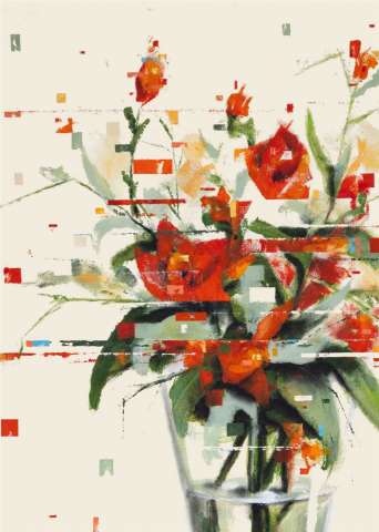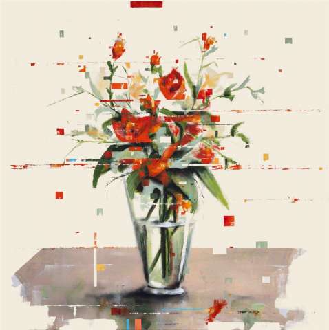 Kaufen Sie jetzt Acrylbilder bei CRELALA KUNST. "Glitch Flowers 9" ein modernes Blumengemälde in Acryl auf Leinwand..