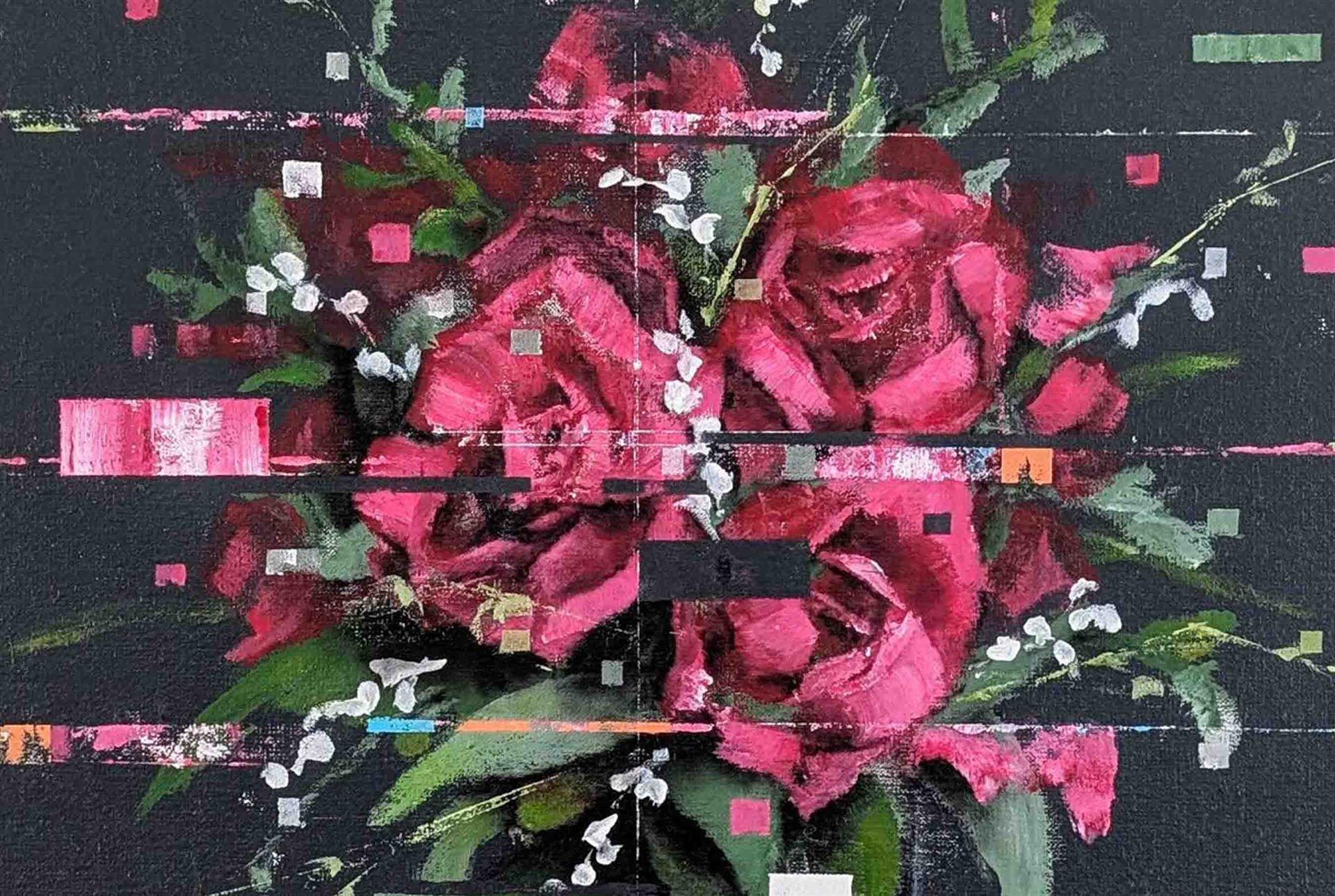 Kaufen Sie jetzt Acrylbilder online bei CRELALA KUNST. "Glitch Flowers 3" ein modernes Blumengemälde in Acryl auf Leinwand..