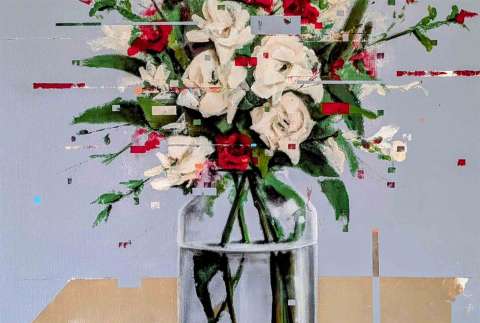 Kaufen Sie jetzt Acrylbilder im Shop bei CRELALA KUNST. "Glitch Flowers 4" ein modernes Blumengemälde in Acryl auf Leinwand..