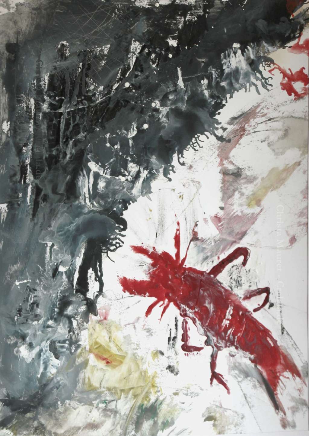 Das Kunstwerk "Hummer" wurde in Enkaustik auf Papier gemalt. Das Außenmaß dieses Unikates beträgt 50 cm x 70 cm.