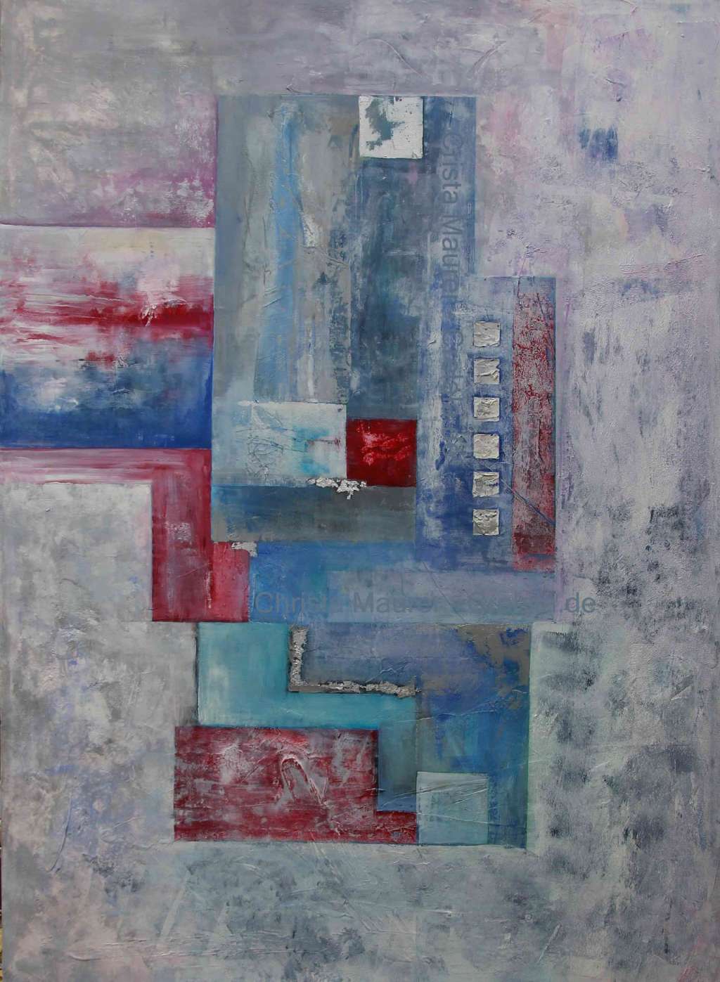 Das Kunstwerk "Windows" wurde in Acryl auf Leinwand gemalt. Das Außenmaß dieses Unikates beträgt 150 cm x 100 cm x 4,5 cm.