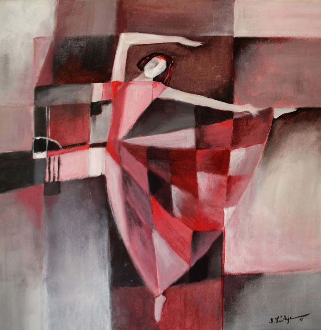 Das Kunstwerk "Tanz 3" wurde in Acryl auf Leinwand gemalt. Das Außenmaß dieses Unikates beträgt 50 cm x 50 cm x 1 cm. Das Unikat kann aber auch im Ensemble mit Tanz 1-3 für 540 € anstatt 570 € gekauft werden.
