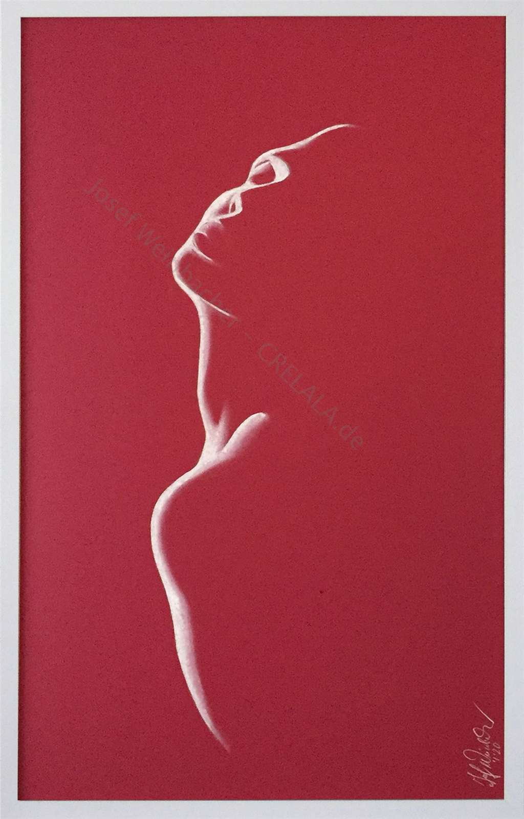 Das Kunstwerk "DÈVOTION - seduction pure" wurde in Ölkreide auf Karton gemalt. Das Unikat wird gerahmt (grau lackierter Holzrahmen) zum Verkauf angeboten. Das Außenmaß dieses Unikates beträgt 83 cm x 52,5 x 3 cm.
