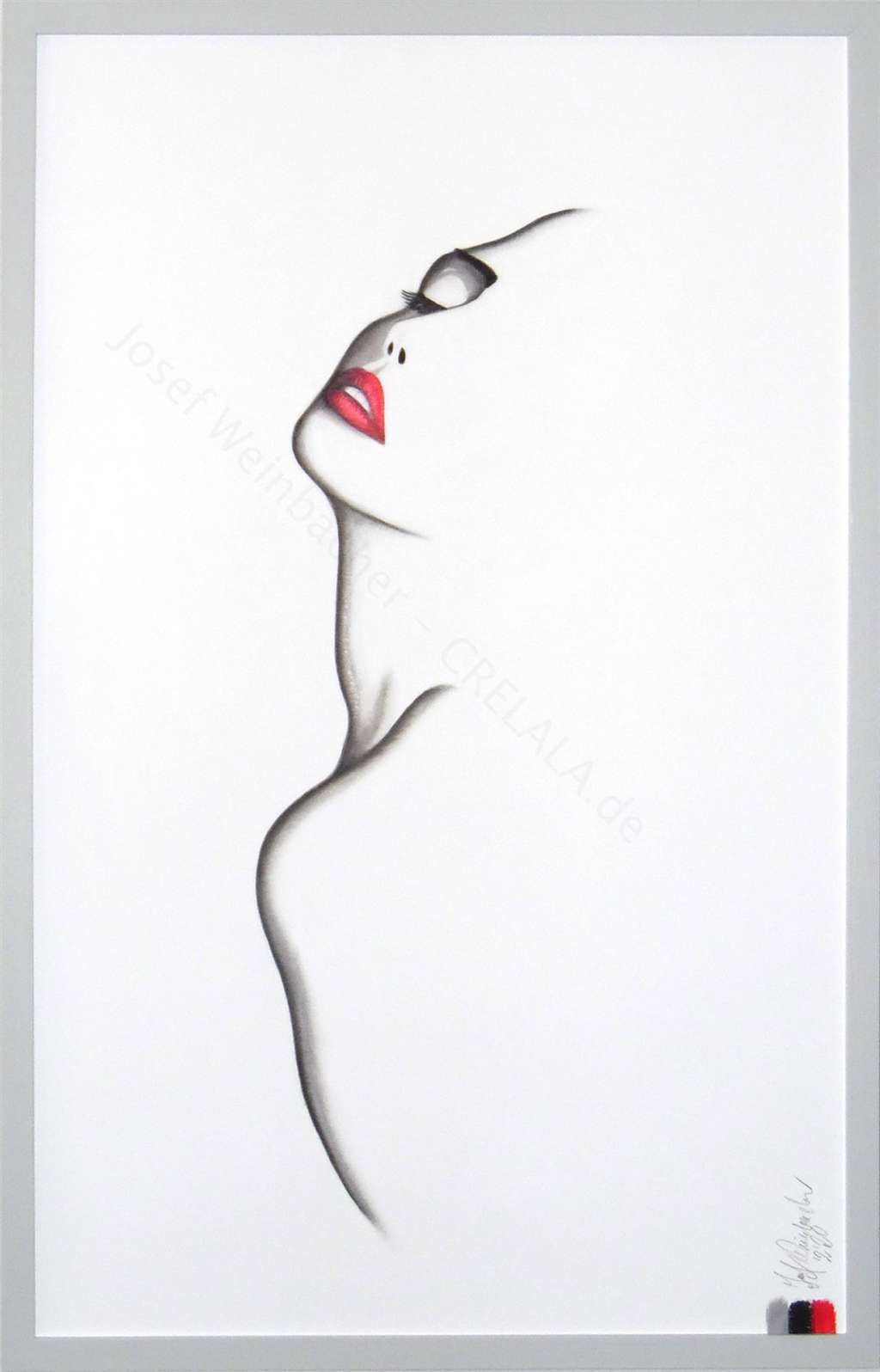 Das Kunstwerk "DÉVOTION - rouge écarlate" wurde in Ölkreide auf Karton gemalt. Das Unikat wird gerahmt (grau lackierter Holzrahmen) zum Verkauf angeboten. Das Außenmaß dieses Unikates beträgt 83 cm x 52,5 x 3 cm.