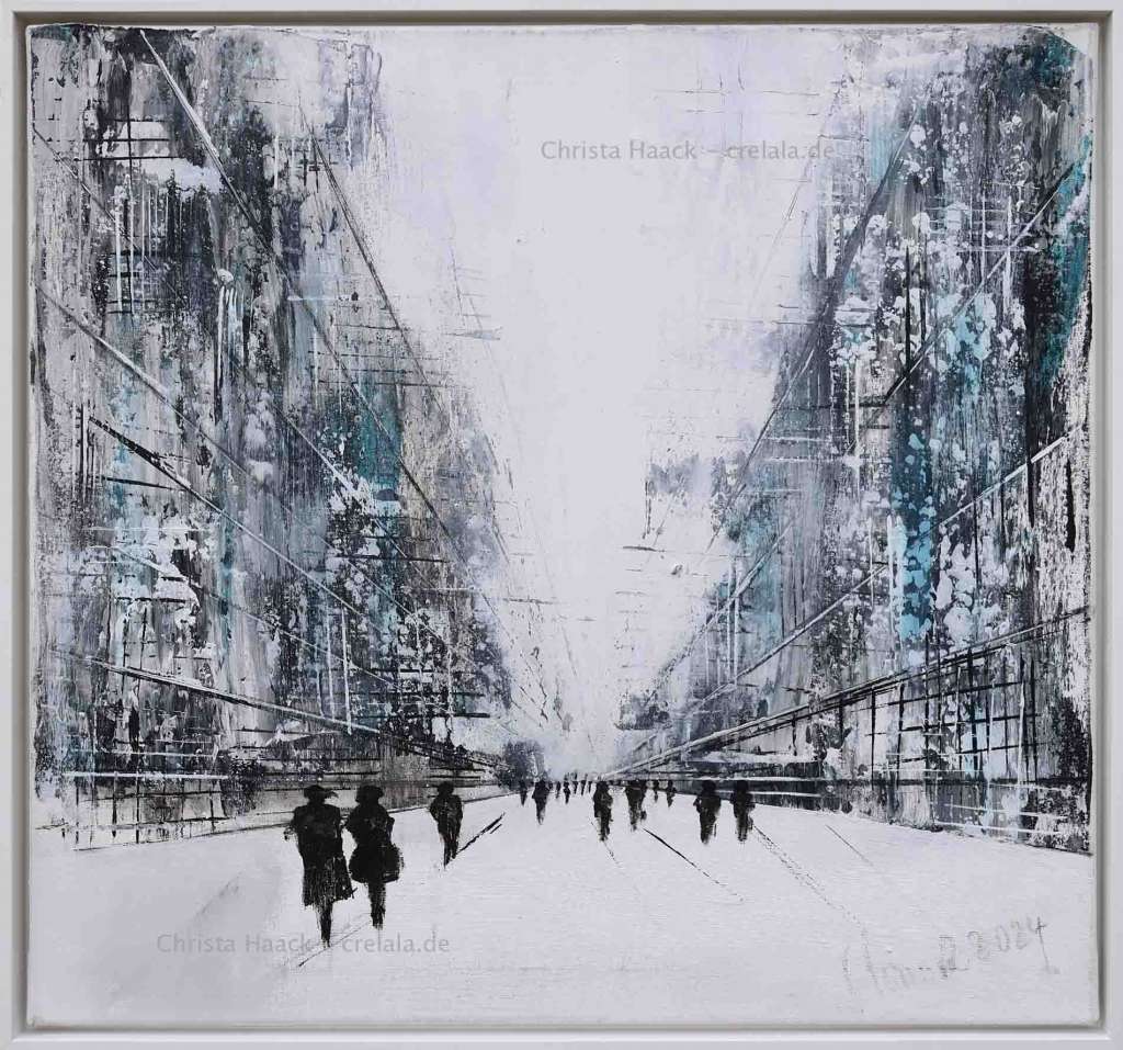 Kaufen Sie jetzt Acrylbilder bei CRELALA KUNST. "Cityscape 6" ein modernes, abstraktes Gemälde in Acryl und Asche auf Leinwand.