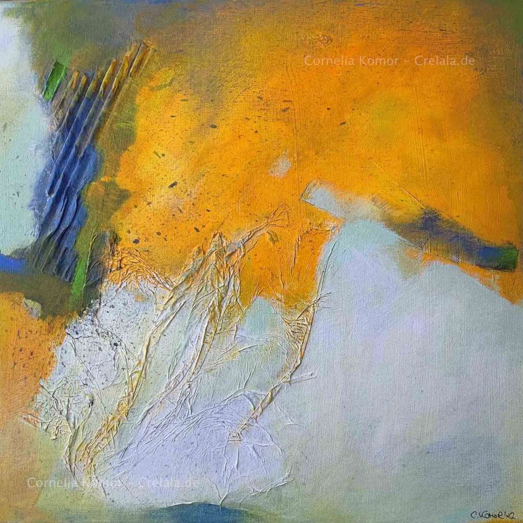 Kaufen Sie jetzt Malerei online bei CRELALA KUNST. "Sonnenwind" ein abstraktes modernes, zeitgenössisches Gemälde in Acryl und Mixed Media auf Leinwand von Cornelia Komor.