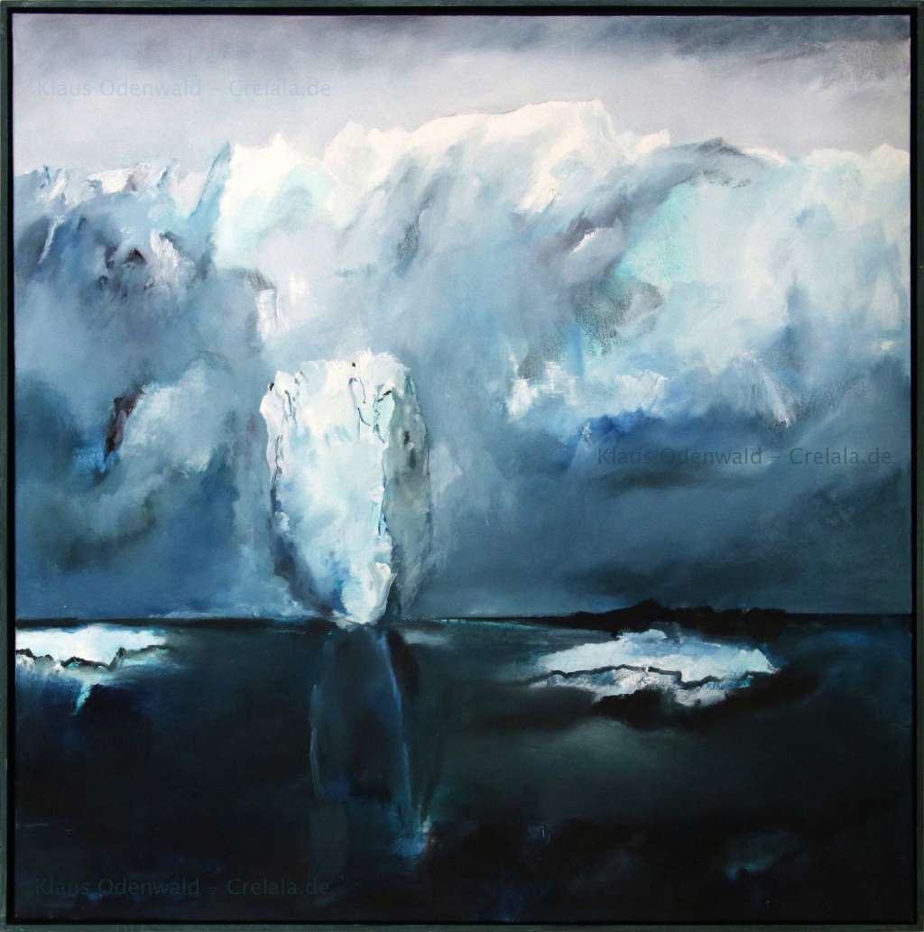 Das Kunstwerk "Eisberg Island" wurde in Öl auf Leinwand gemalt. Das Unikat wird gerahmt zum Verkauf angeboten. Das Außenmaß dieses Unikates beträgt 120 cm x 120 cm x 4 cm.