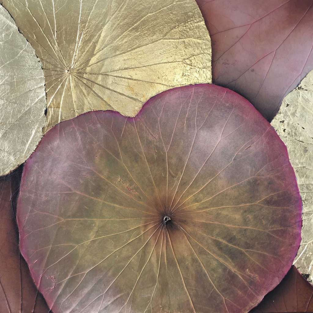 Das Kunstwerk "Feminin" wurde mit spezieller thailändischer Lotusmalerei erstellt. Das Kunstwerk ist mit Ölfarbe und Blattgold auf einem Lotusblatt auf Leinwand gemalt. Die Ränder der Leinwand sind schwarz gehalten. Das Außenmaß dieses Unikates beträgt 40 cm x 40 cm x 1,8 cm. Die Bilder lassen sich wunderbar mit anderen Werken kombinieren.