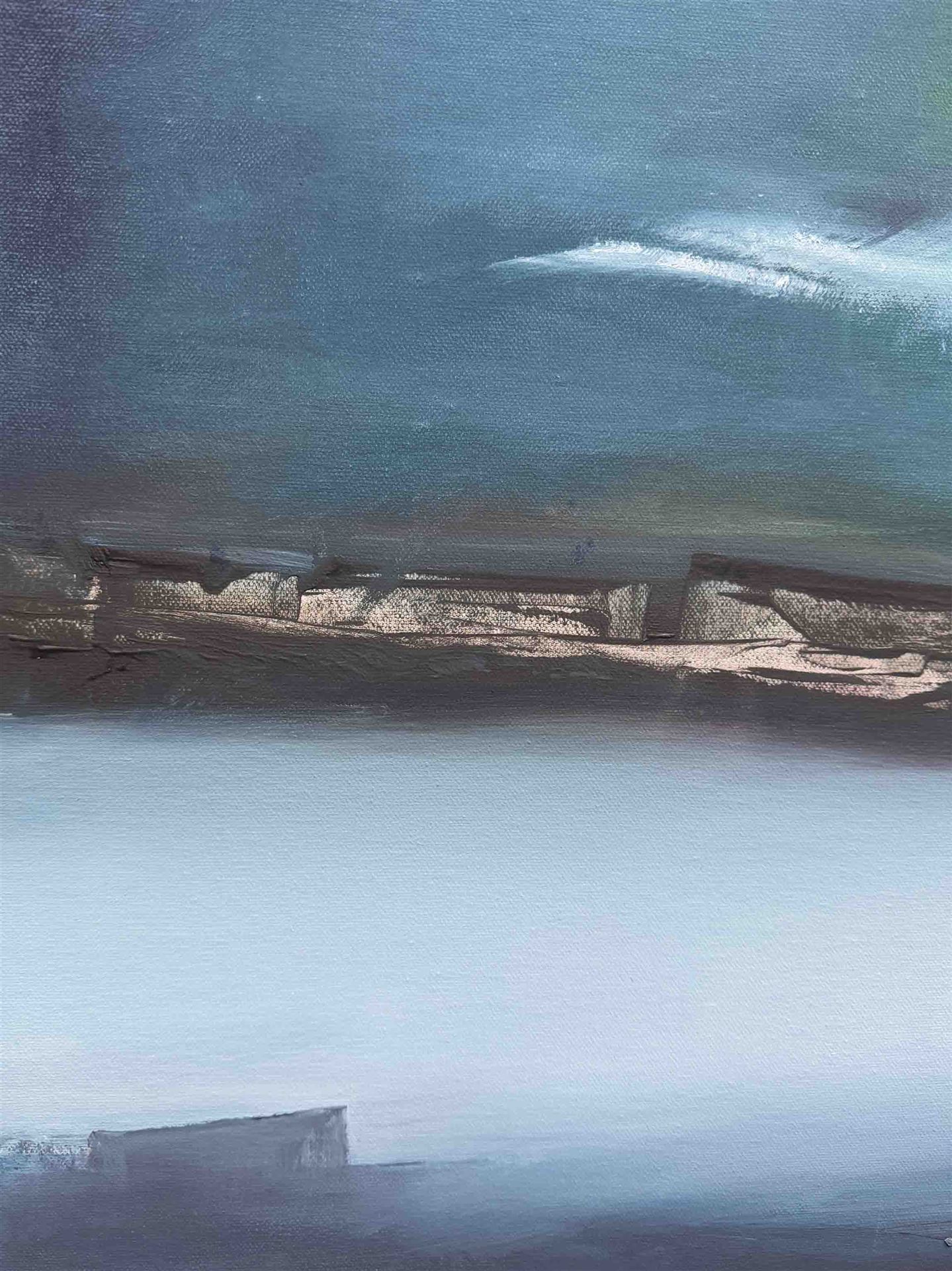 Kaufen Sie jetzt Ölbilder bei CRELALA KUNST. "Nordlicht" ein modernes, Landschaftsgemälde in Öl auf Leinwand, gerahmt.