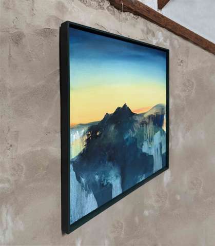 Das Kunstwerk "Dentelles de Montmirail" wurde in Öl auf Leinen gemalt. Das Gemälde wird gerahmt zum Verkauf angeboten und hat ein Außenmaß von 90 cm x 90 cm x 4,5 cm.