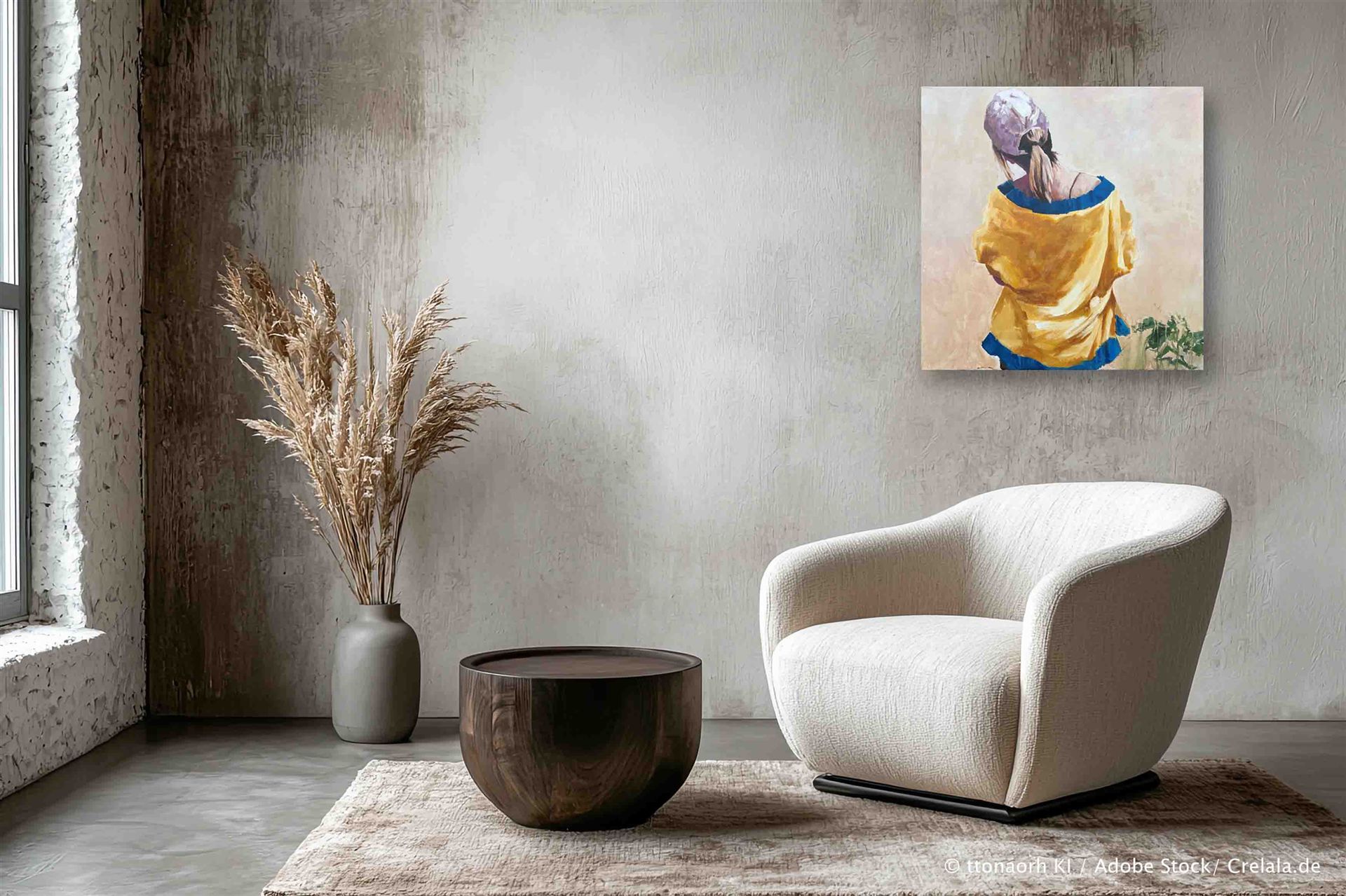 Kaufen Sie jetzt Ölbilder bei CRELALA KUNST. "Besucherin" ein modernes, figuratives Gemälde in Öl auf Leinwand, gerahmt.