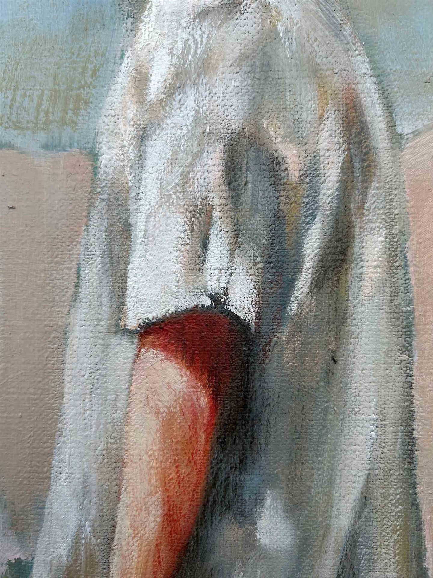 Das Kunstwerk "Was folgt 2" wurde in Öl auf Reinleinen ca. 430 g pro qm gemalt. Das Gemälde wird gerahmt zum Verkauf angeboten und hat ein Außenmaß von 75 cm x 85 cm x 4 cm.
