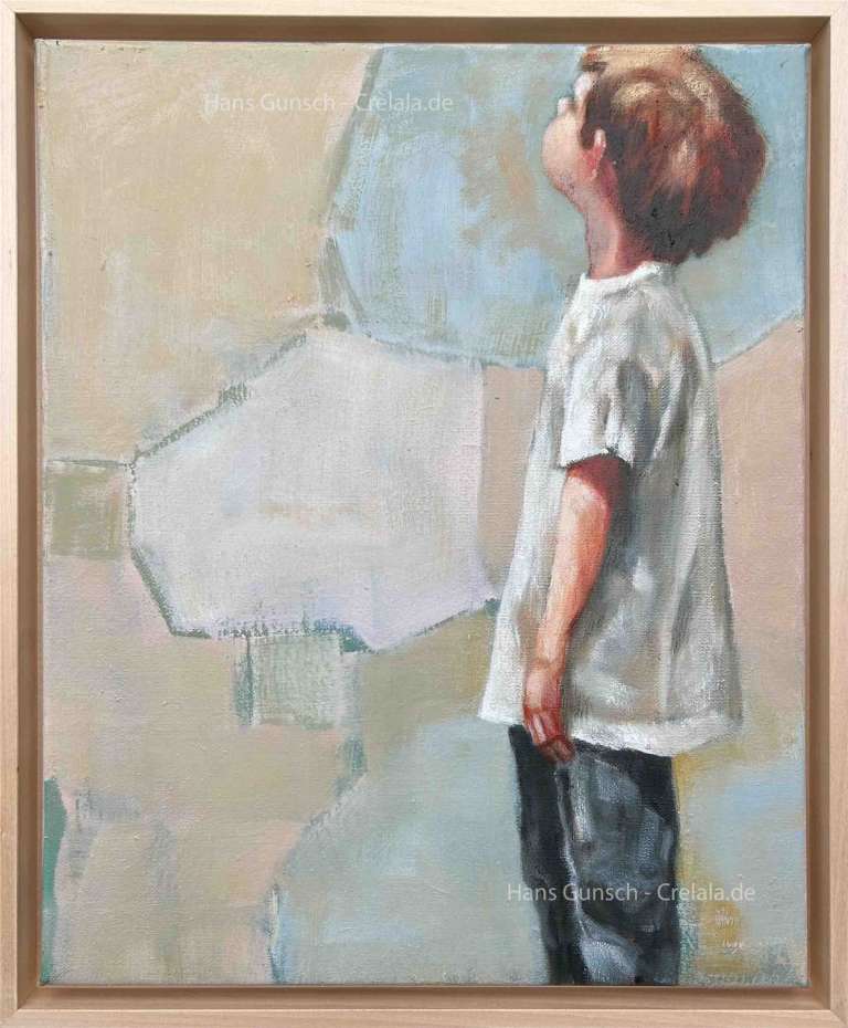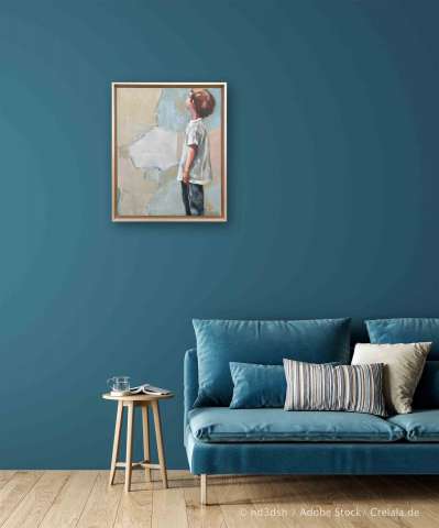 Kaufen Sie jetzt Ölbilder bei CRELALA KUNST. "Was folgt 2" ein modernes, figuratives Gemälde in Öl auf Leinwand, gerahmt.