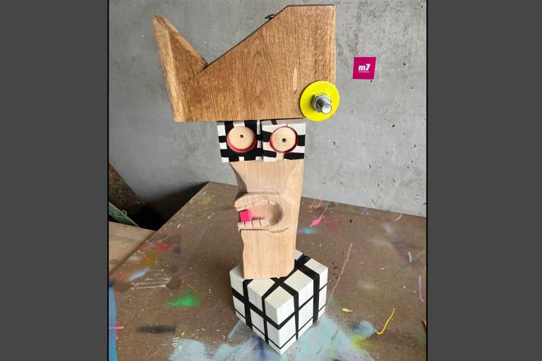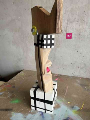 Bestellen Sie jetzt eine Holzskulptur im CRELALA KUNST Shop. Moderne, zeitgenössische Skulptur von Michaela Achatz - "Caption K.".