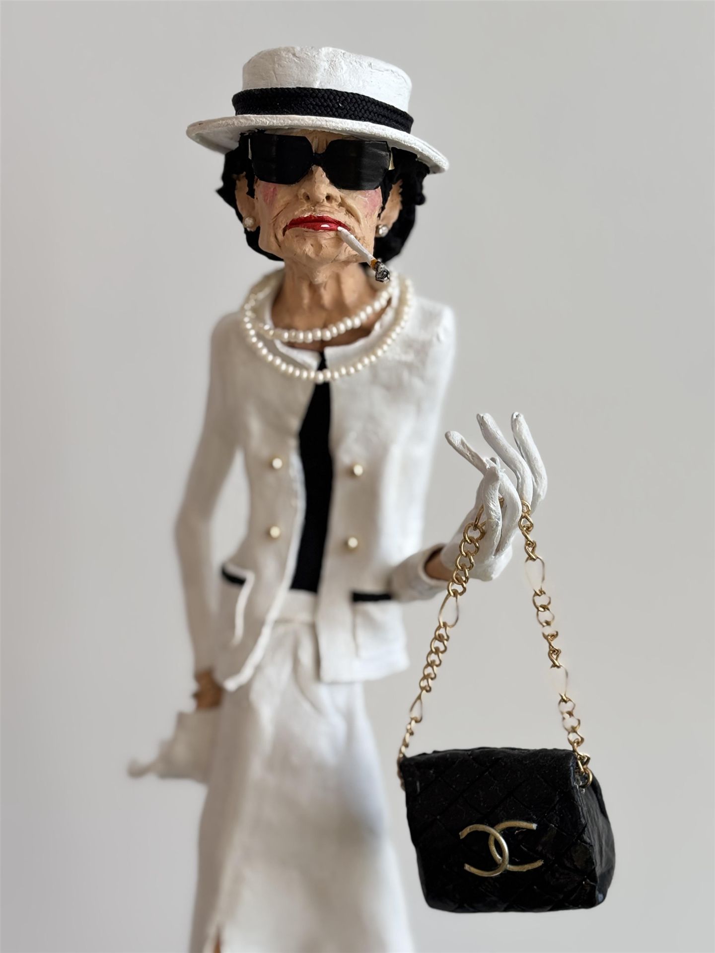 Bestellen Sie jetzt eine Skulptur aus der Serie " Schräge Typen" im CRELALA KUNST Shop. Moderne, zeitgenössische Skulptur von Marina Krohs - "Coco Chanel".