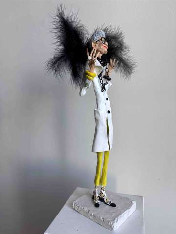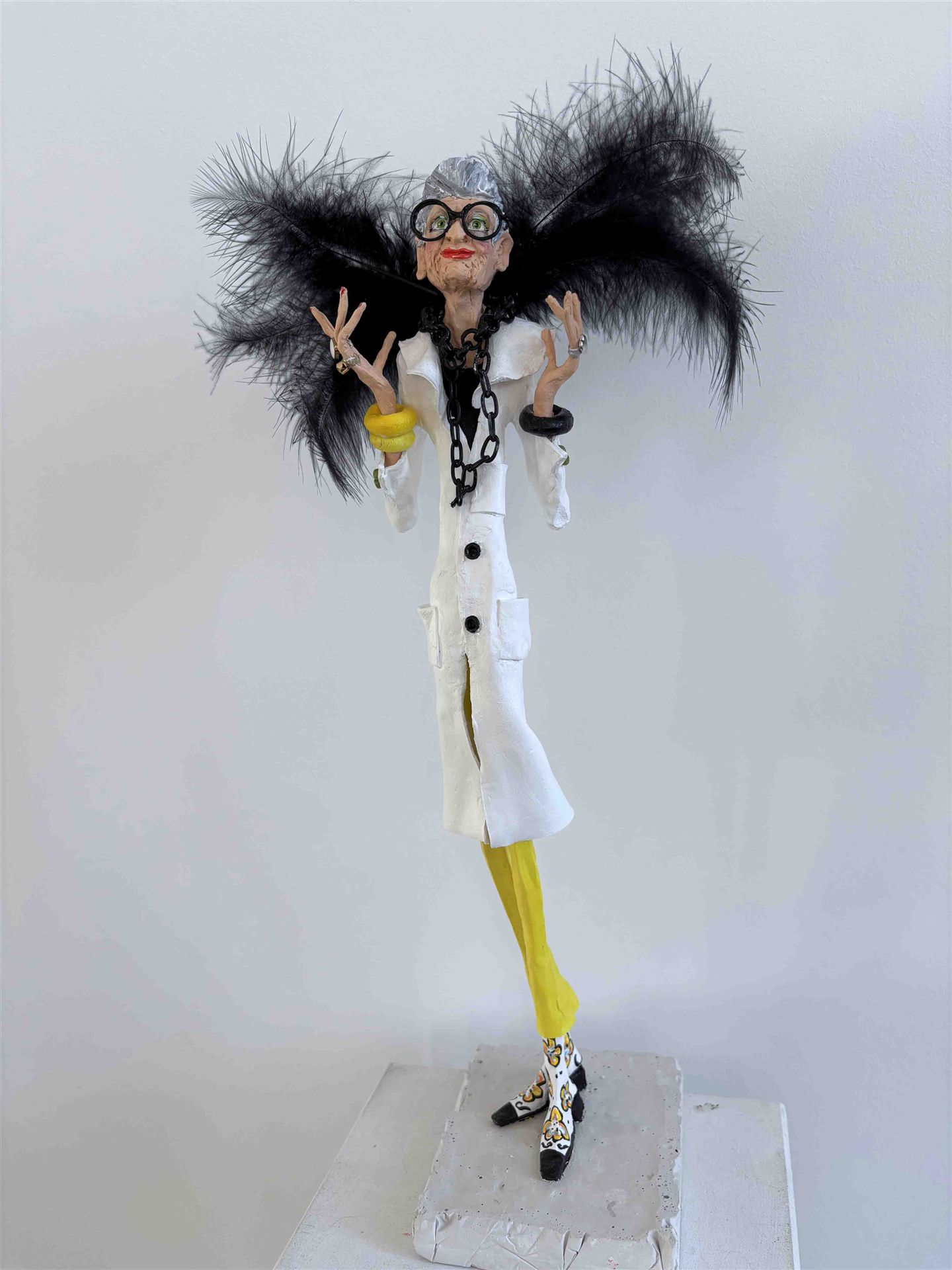 Bestellen Sie jetzt eine Skulptur aus der Serie " Schräge Typen" im CRELALA KUNST Shop. Moderne, zeitgenössische Skulptur von Marina Krohs - "Iris Apfel".