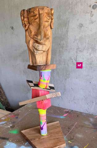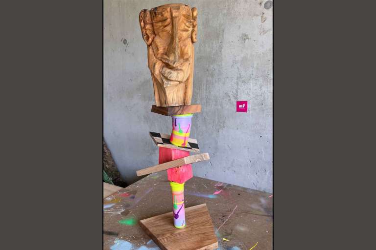 | Technik / Material: | Holzskulptur aus 100- jährigem Lindenholz sowie Schrauben und Metall |