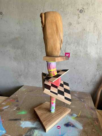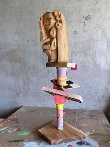 Bestellen Sie jetzt eine Holzskulptur im CRELALA KUNST Shop. Moderne, zeitgenössische Skulptur von Michaela Achatz - "Zirkusdirektor".