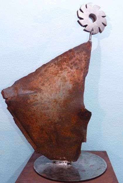 In den vergangenen Jahren besuchte Anika Bartel Fortbildungen bei Thorsten Fischer, bei dem sie ihr Spektrum um Objekte aus Metall erweitert hat. Sie ist fasziniert von der ganz anderen Herangehensweise der Gestaltung der Skulpturen. Kann man beim Modellieren mit Ton durch Hinzufügen oder Wegnehmen variieren, ist dies bei bearbeiteten und zusammen geschweißten Metallteilen deutlich schwieriger. Auch das Ergebnis ist nicht immer gleich so planbar, die Herausforderung besteht darin, zufällige Metallteile zu einem neuen Ganzen zusammen zu bringen.